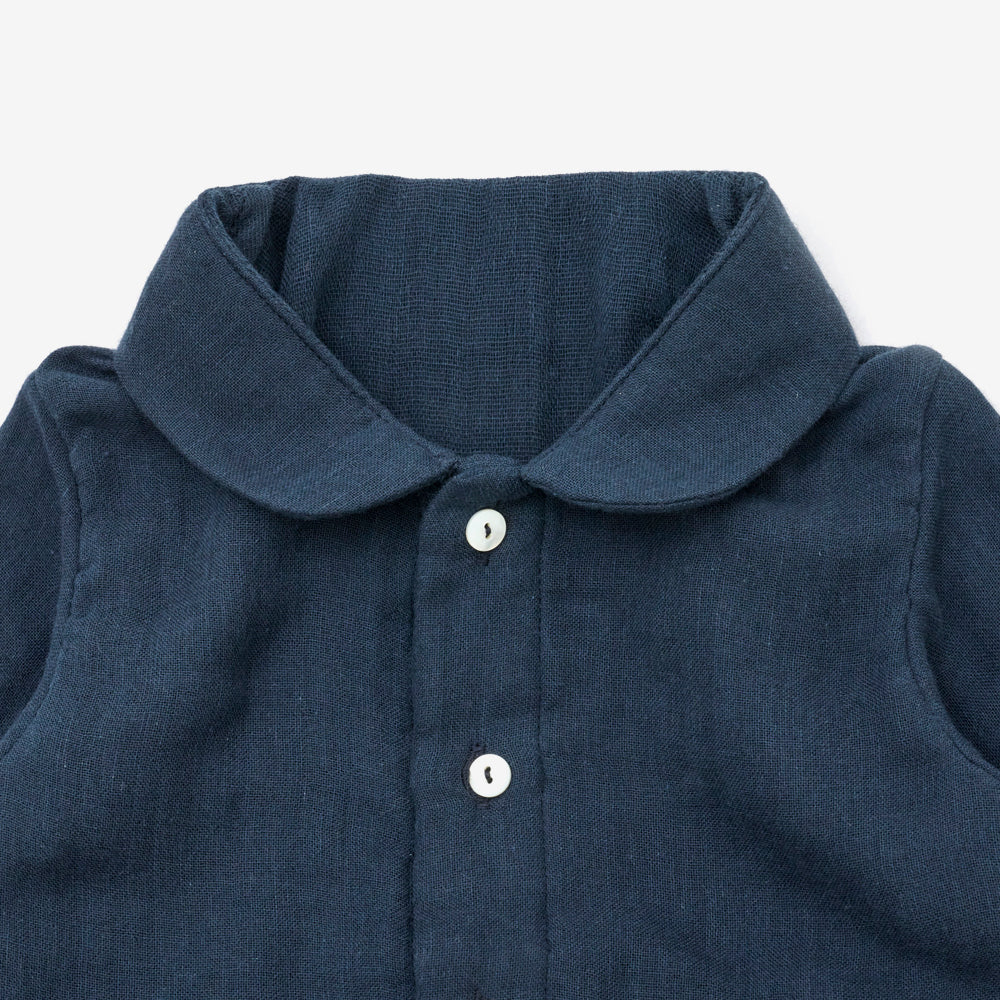 低速織機で時間をかけて丁寧に織り上げた襟付きガーゼパジャマ。