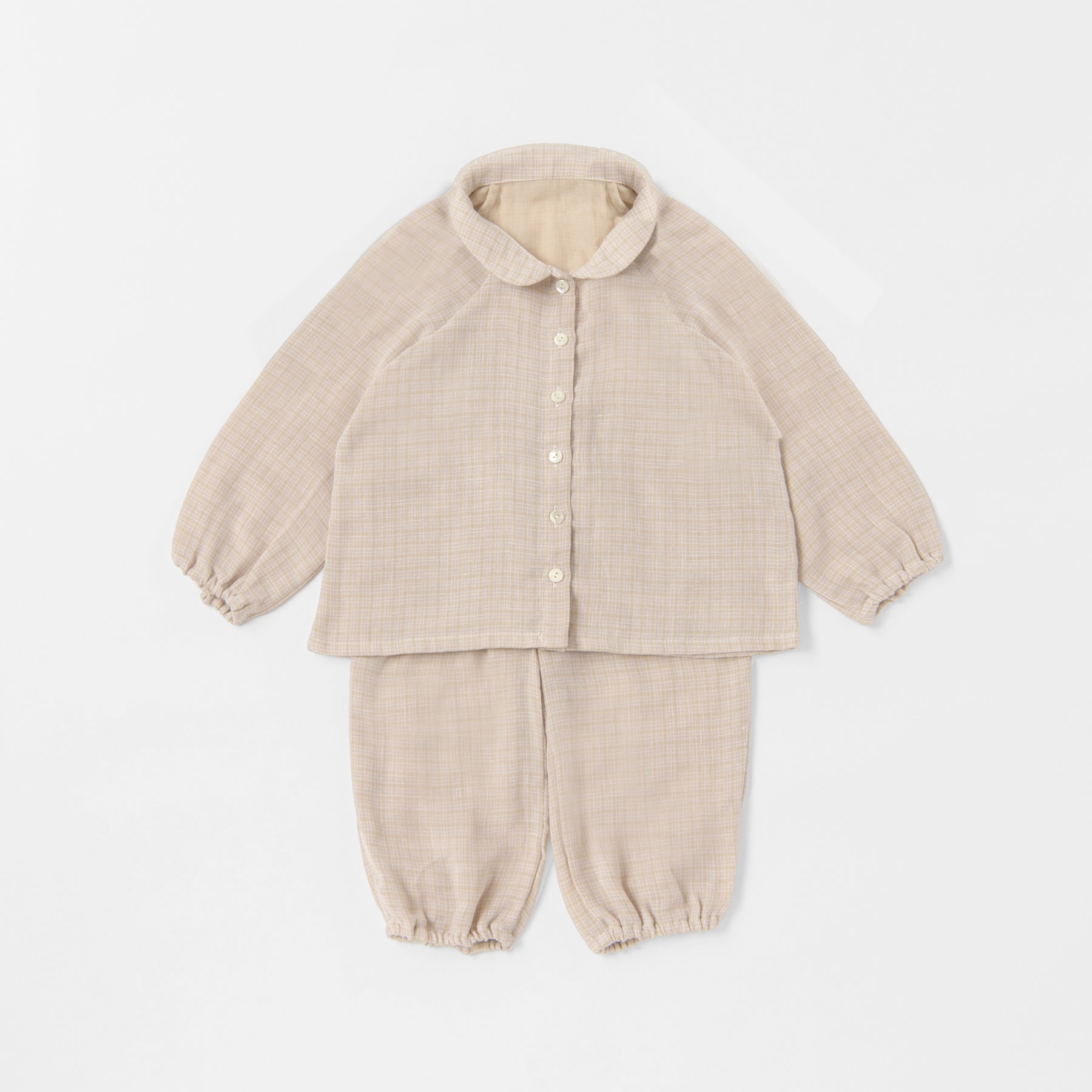 低速織機で時間をかけて丁寧に織り上げた襟付きガーゼパジャマ。