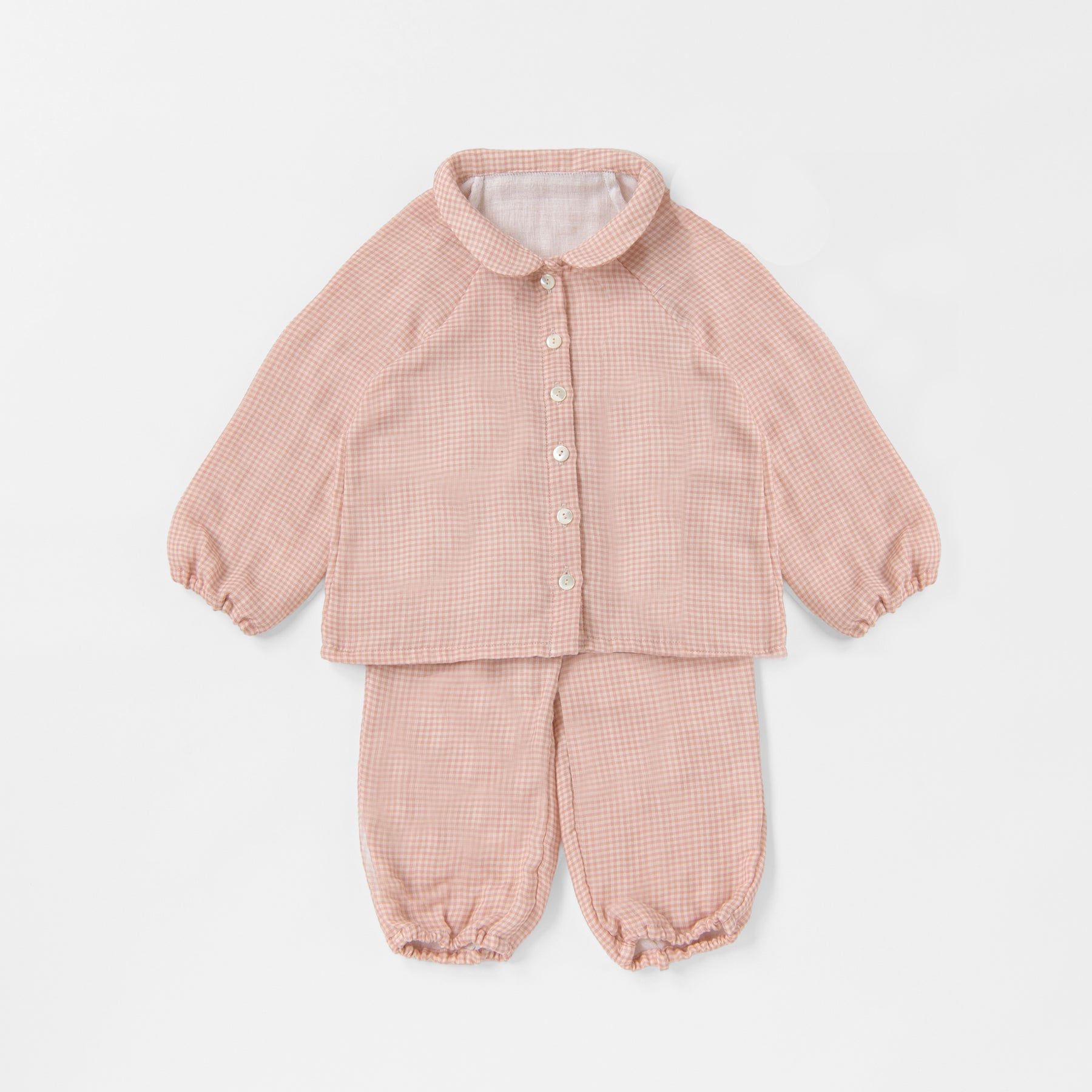 低速織機で時間をかけて丁寧に織り上げた襟付きガーゼパジャマ。