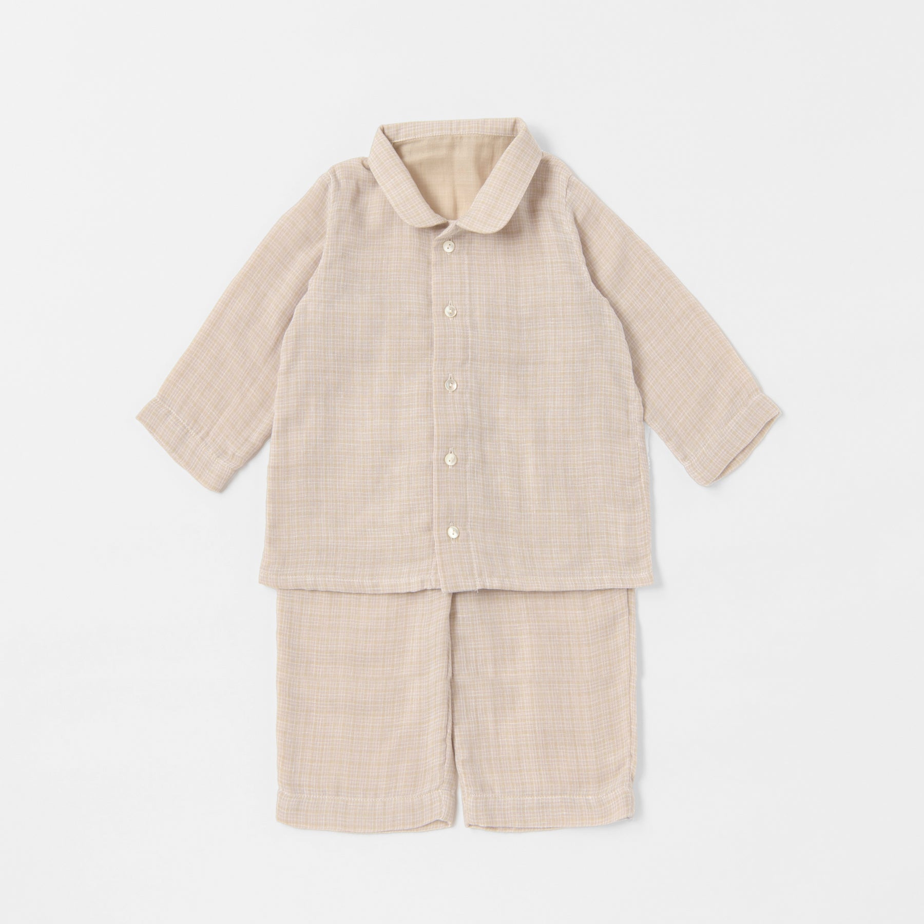 低速織機で時間をかけて丁寧に織り上げたやわらかなガーゼパジャマ。ウエストはゴムで調節が可能です。