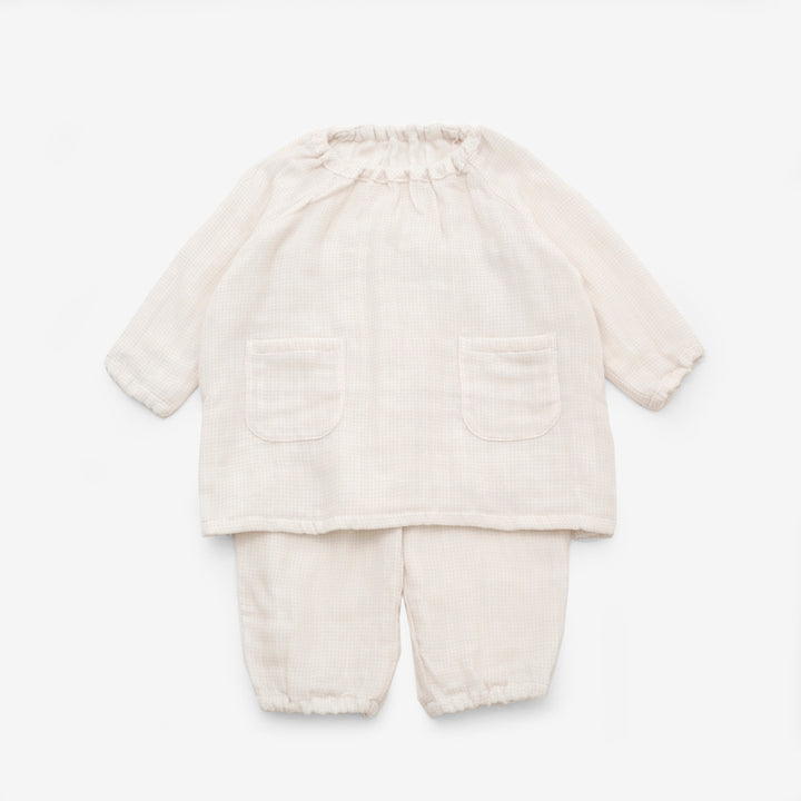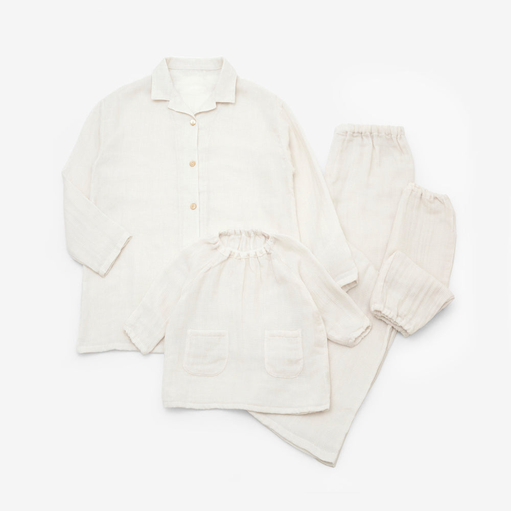 あたたかくやわらかな3重織ガーゼのスモックパジャマ。