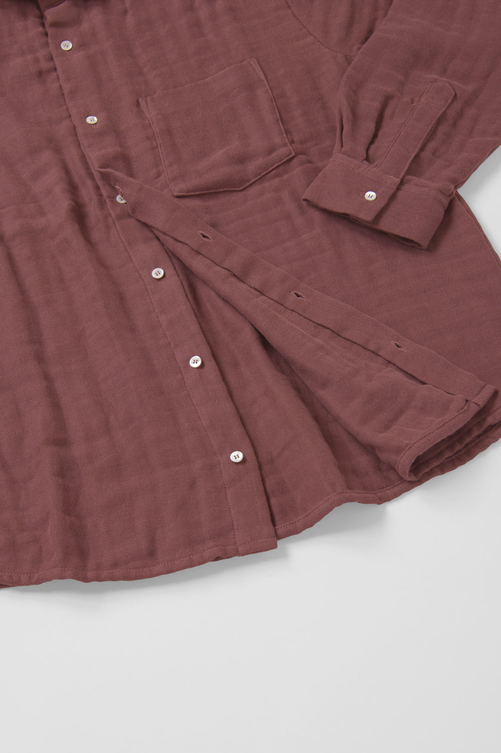 身幅を広めにとることで、リラックスして着られる快適なシルエットに仕上げました。お腹まわりが気になる方にも着やすく、オーバーサイズシャツがお好きな女性や、ゆとりのある服を選びたい妊婦さんにもおすすめ。幅広い方に着ていただける一枚です。