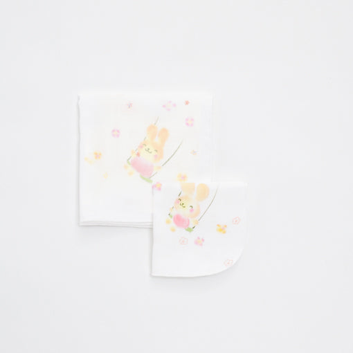 和歌山県でプリントした綿100%2重織ガーゼの4重仕立てと6重仕立て。吸水性が高く乾きが早いため、日常使いにおすすめです。