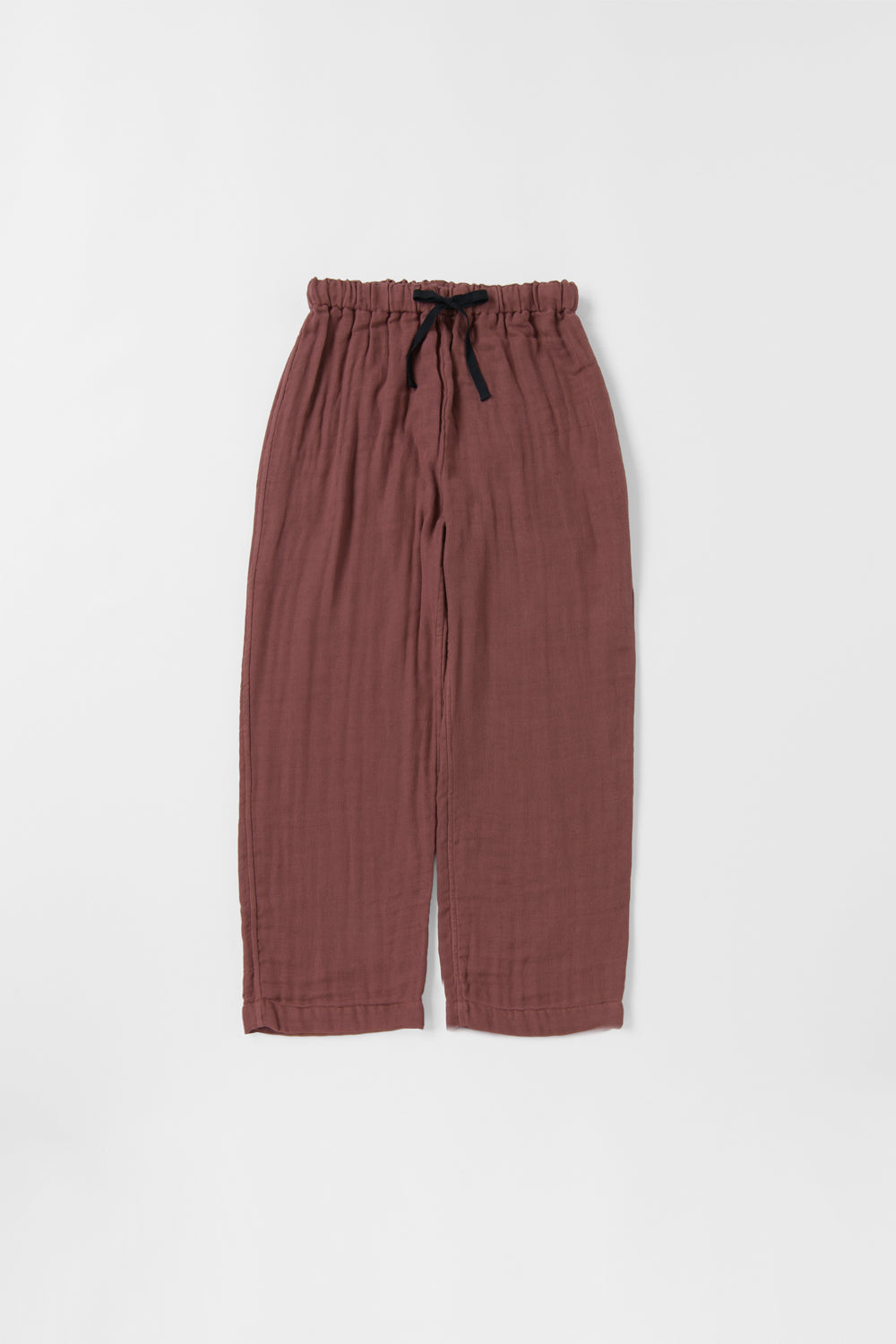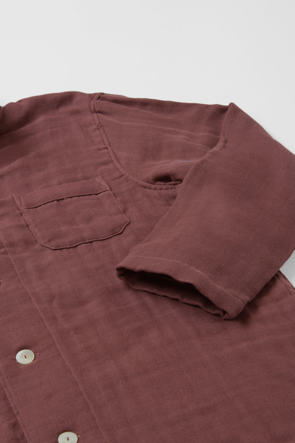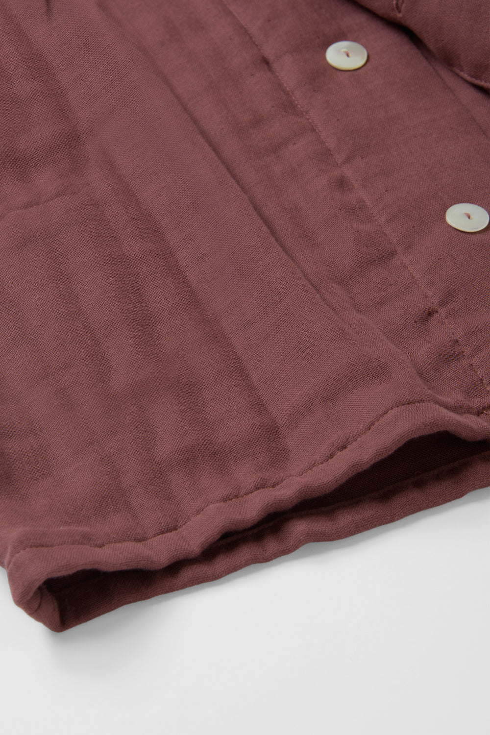 タテ糸に毛羽の少ないコンパクトヤーン、ヨコ糸にツヤのあるコーマ糸を使用。3重ガーゼのような軽やかさと、4重織ならではのあたたかさを兼ね備えた、やわらかで丈夫なガーゼ素材です。