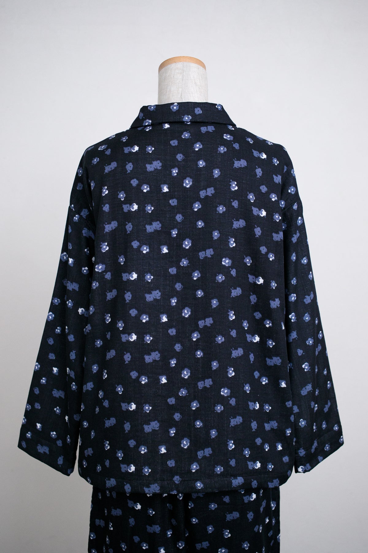 丸みのある形のパジャマで、可愛いプリント柄です。