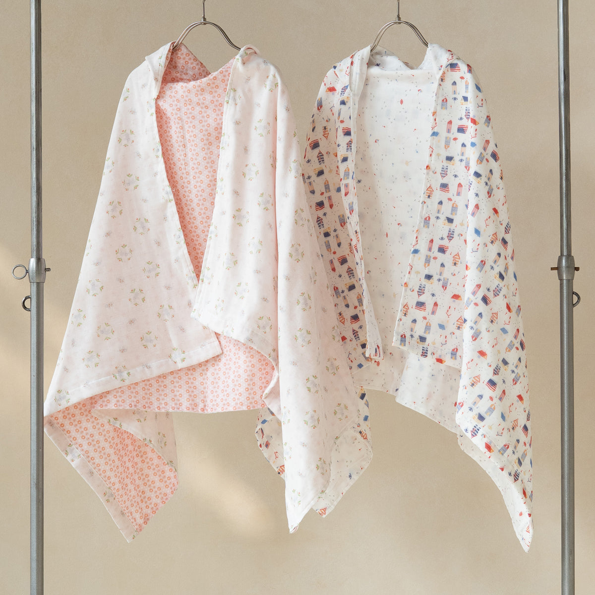 毎日のバスタイムはもちろん、お昼寝時のケットや外出時の日よけなど、さまざまなシーンでお使いいただけます。