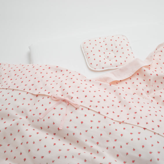 薄綿入りの平らな枕はまだ首がすわっていない赤ちゃんの頭をやさしく支え、寝汗をしっかり吸収します。