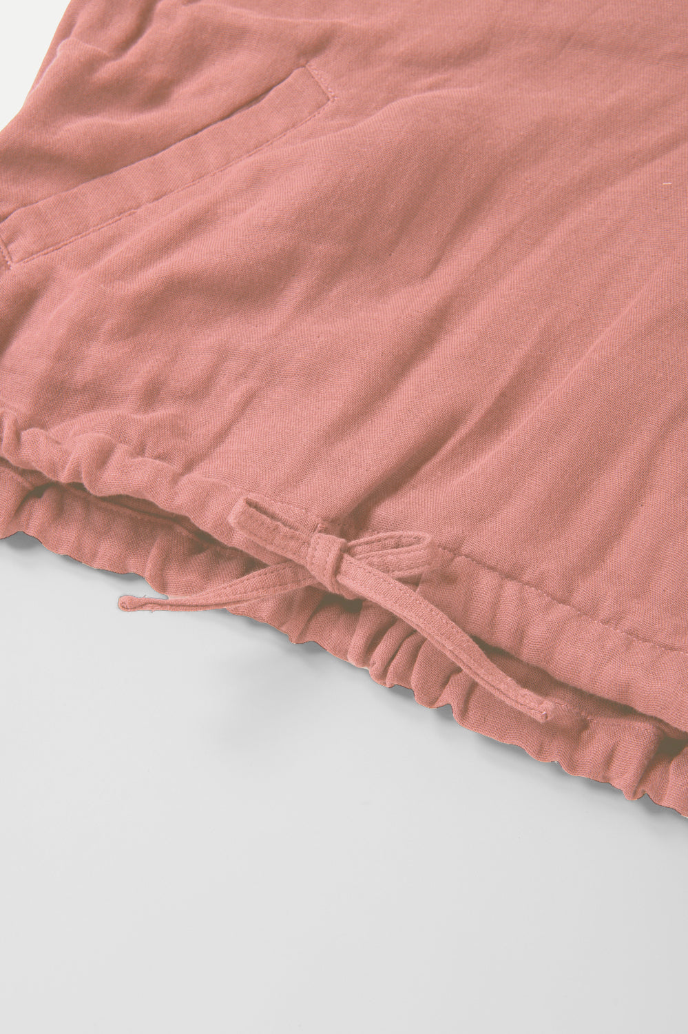 お腹まわりを紐で調整できるため、風を通しにくく、寒い季節でもあたたかな着心地。