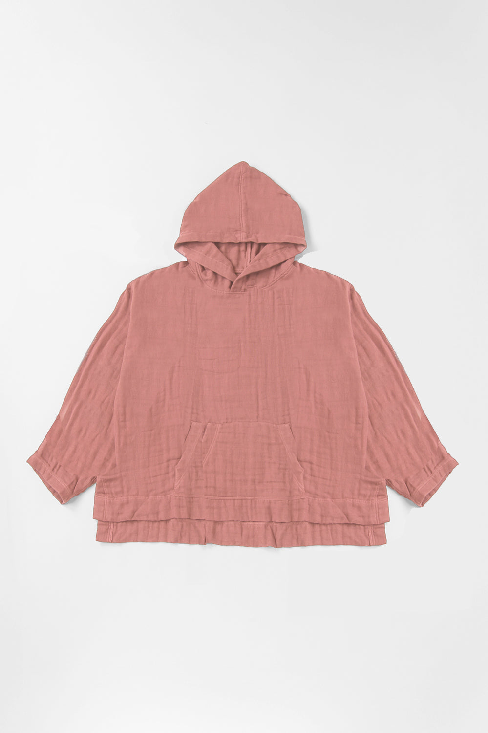 身幅をたっぷりととった、軽やかであたたかいかぶりのパーカー。