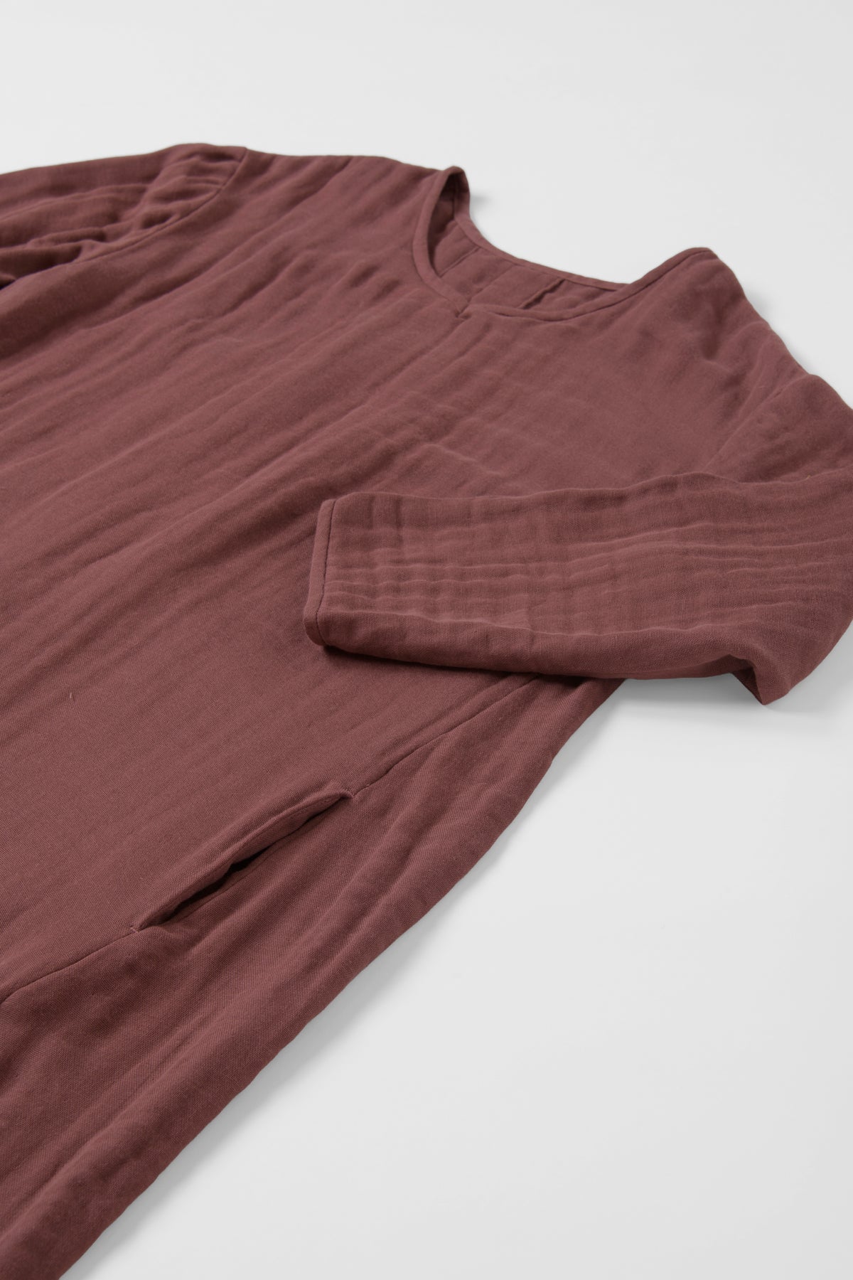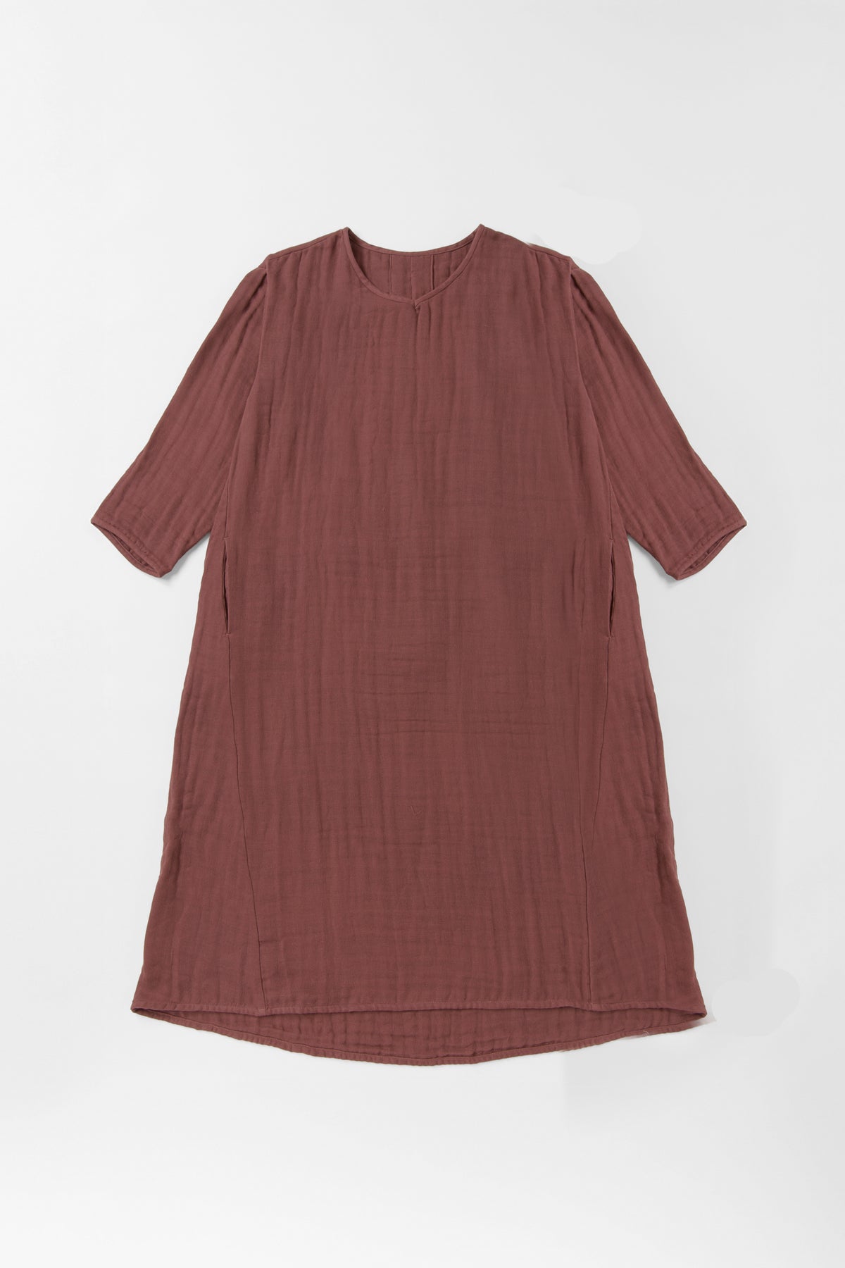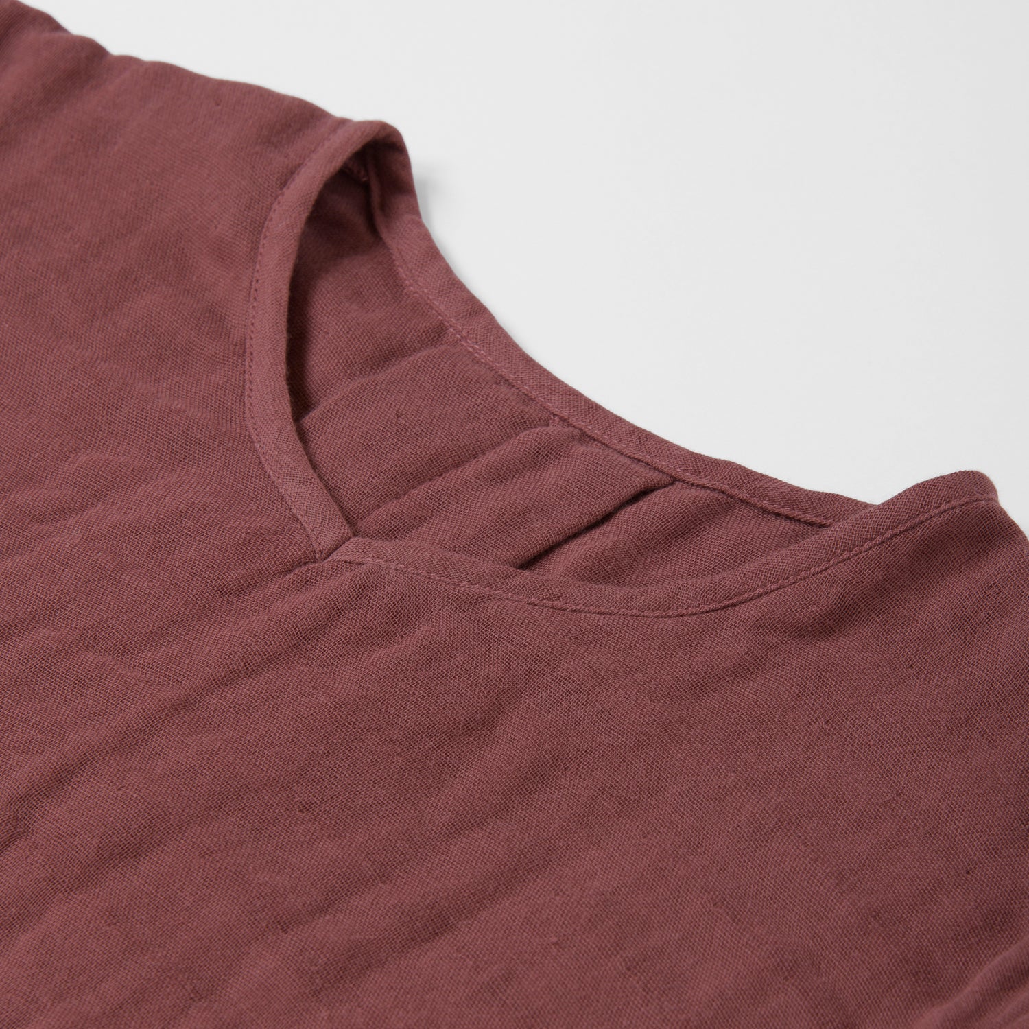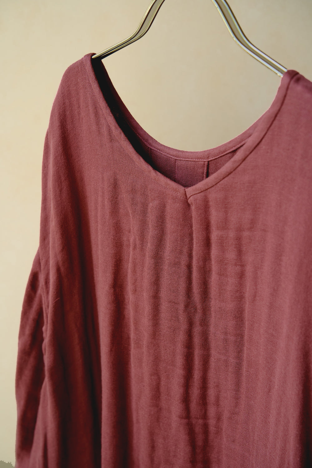 一枚でさらりと着られるシンプルなデザインで、背中にはタックが入っているので、ゆったりとした着心地です。