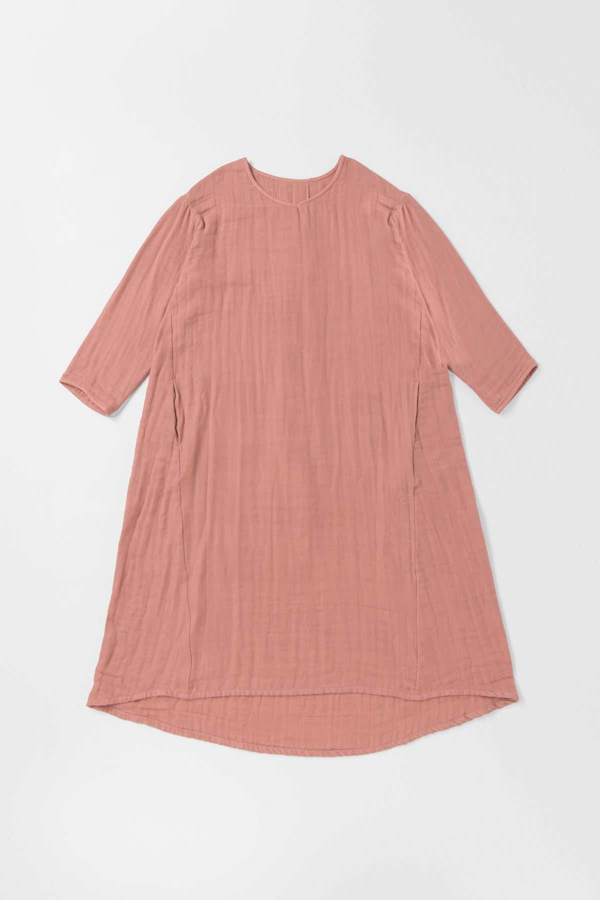 一枚でさらりと着られるシンプルなデザインで、背中にはタックが入っているので、ゆったりとした着心地です。
