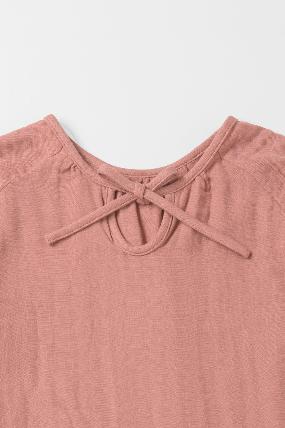 首元のリボンで開き具合を調整でき、首まわりの空きが気になる方にも安心です。