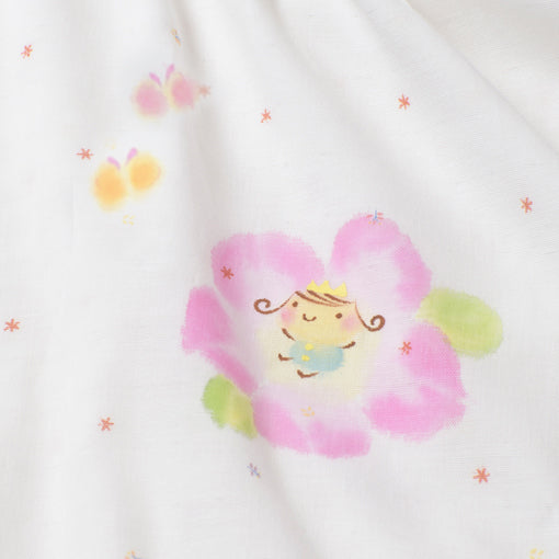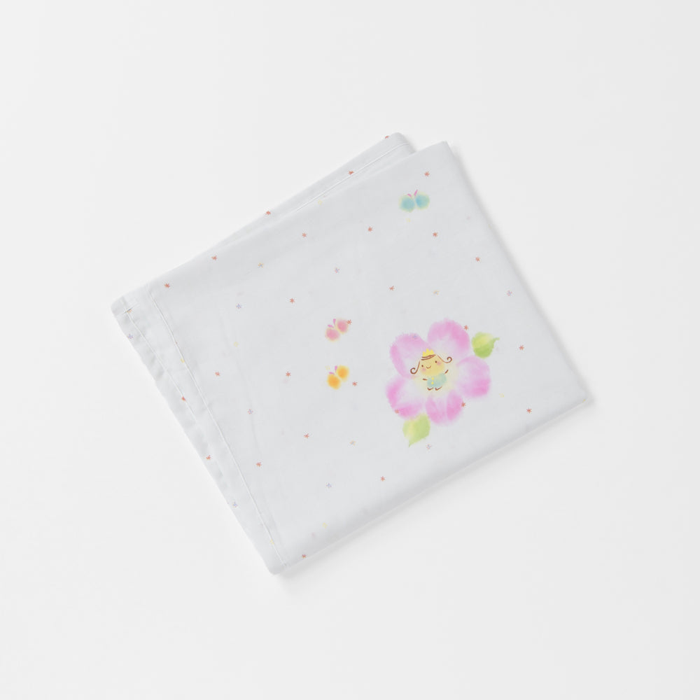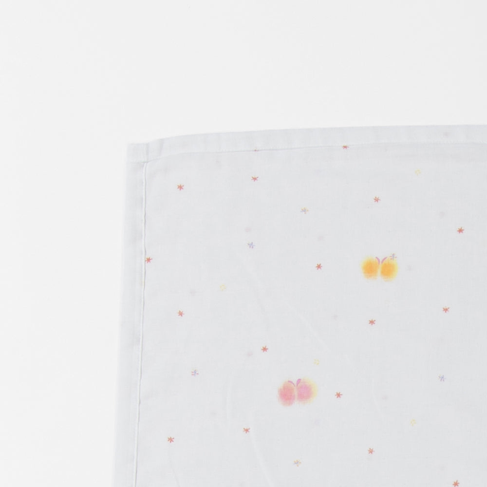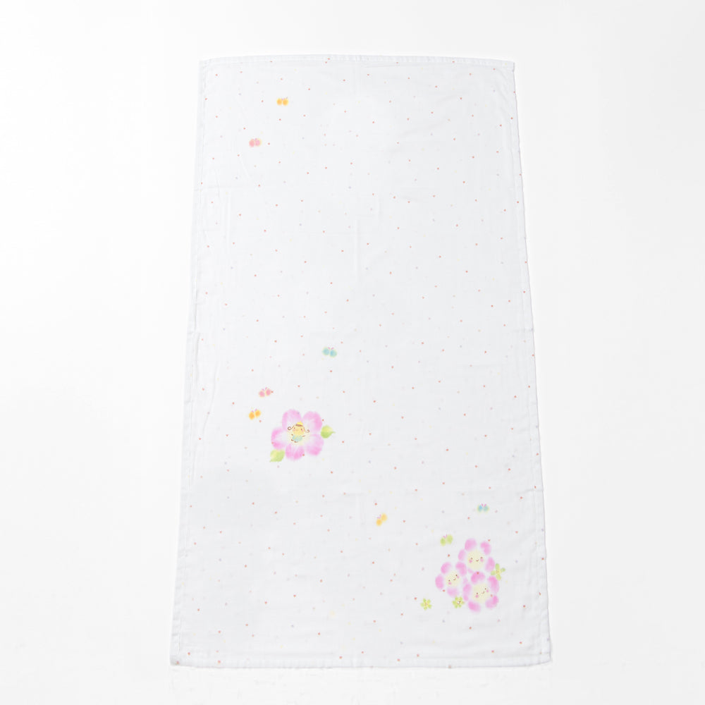 和歌山県でプリントした綿100%2重織ガーゼの4重仕立て。 洗うたびにやわらかく肌になじみます。吸水性が高く乾きが早いため、日常使いにおすすめです。
