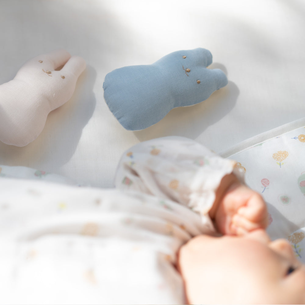 赤ちゃんの小さな手にもやさしくなじむ、かわいらしいにぎにぎ。ふんわりやわらかなガーゼ素材で、初めてのおもちゃにもぴったり。ご自宅で手洗いできる手軽さでギフトにも人気のアイテムです。