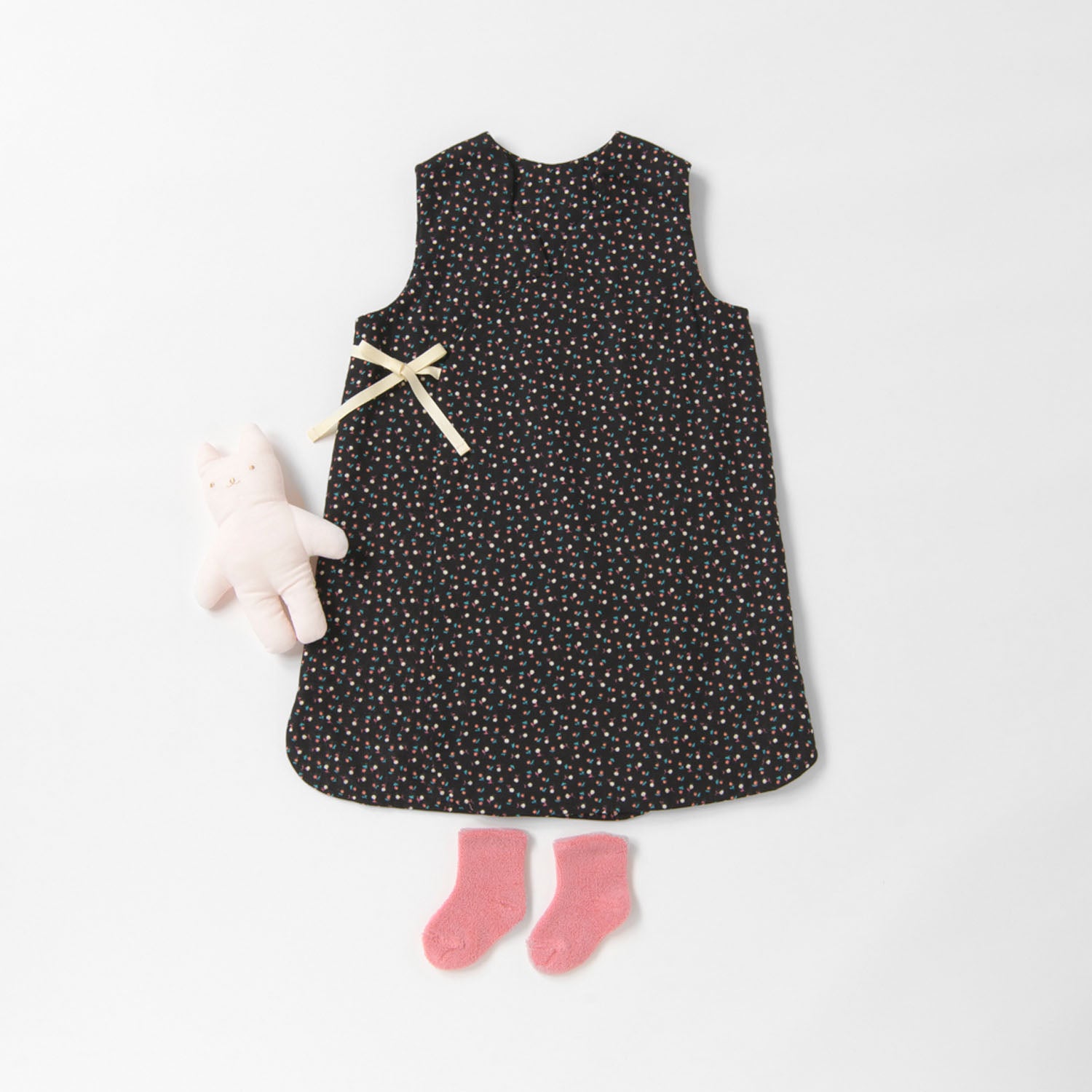 大人の手の平ほどの高さのぬいぐるみ。やわらかなガーゼ素材で手洗いできます。【素材】和歌山県でプリントした綿100%の2重織ガーゼの5重仕立て。吸水性に優れ、乾きが早いため、日常使いにおすすめです。