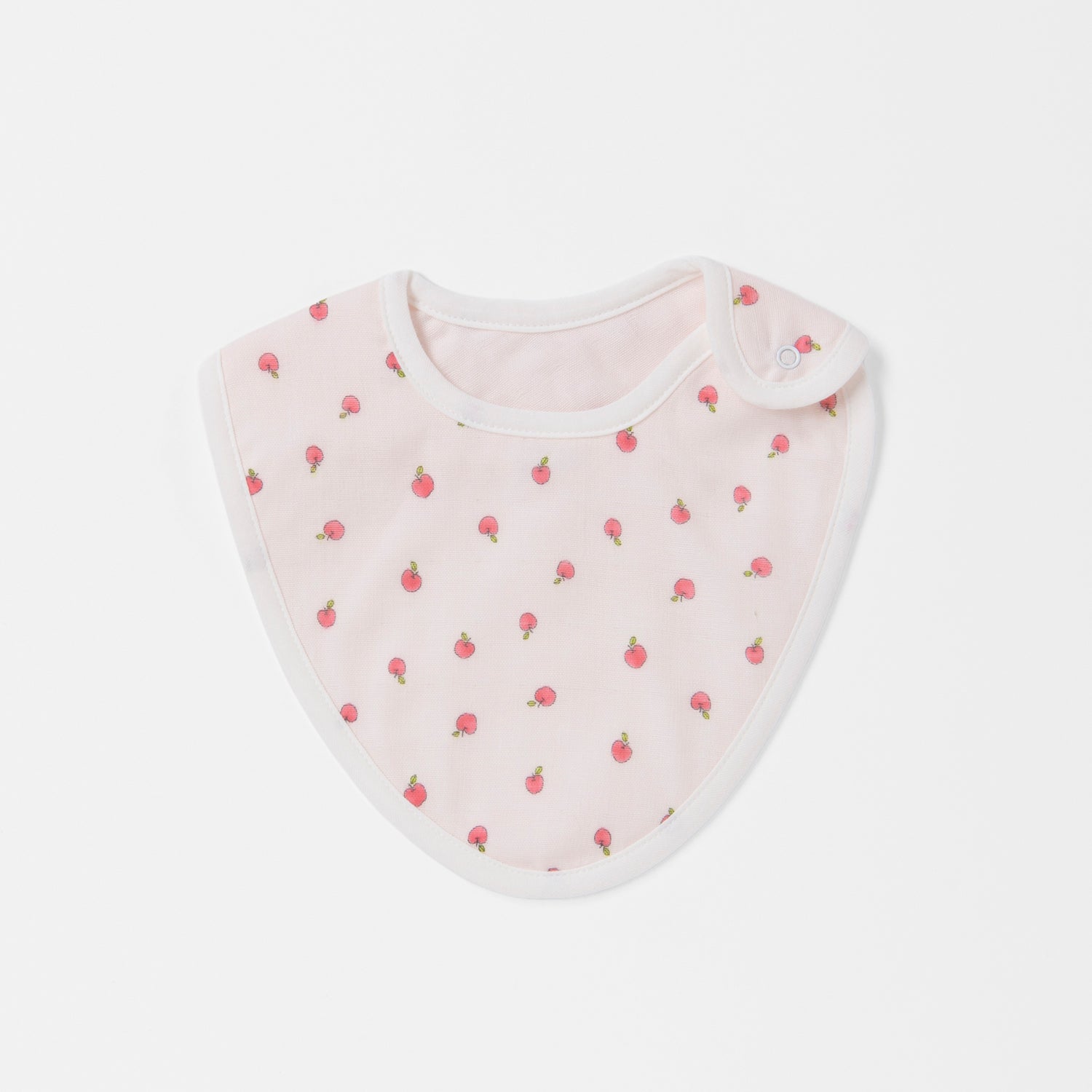 湿り気を通しにくい軽防水のポリエステル布を、やわらかな2重織ガーゼではさんだスタイ。