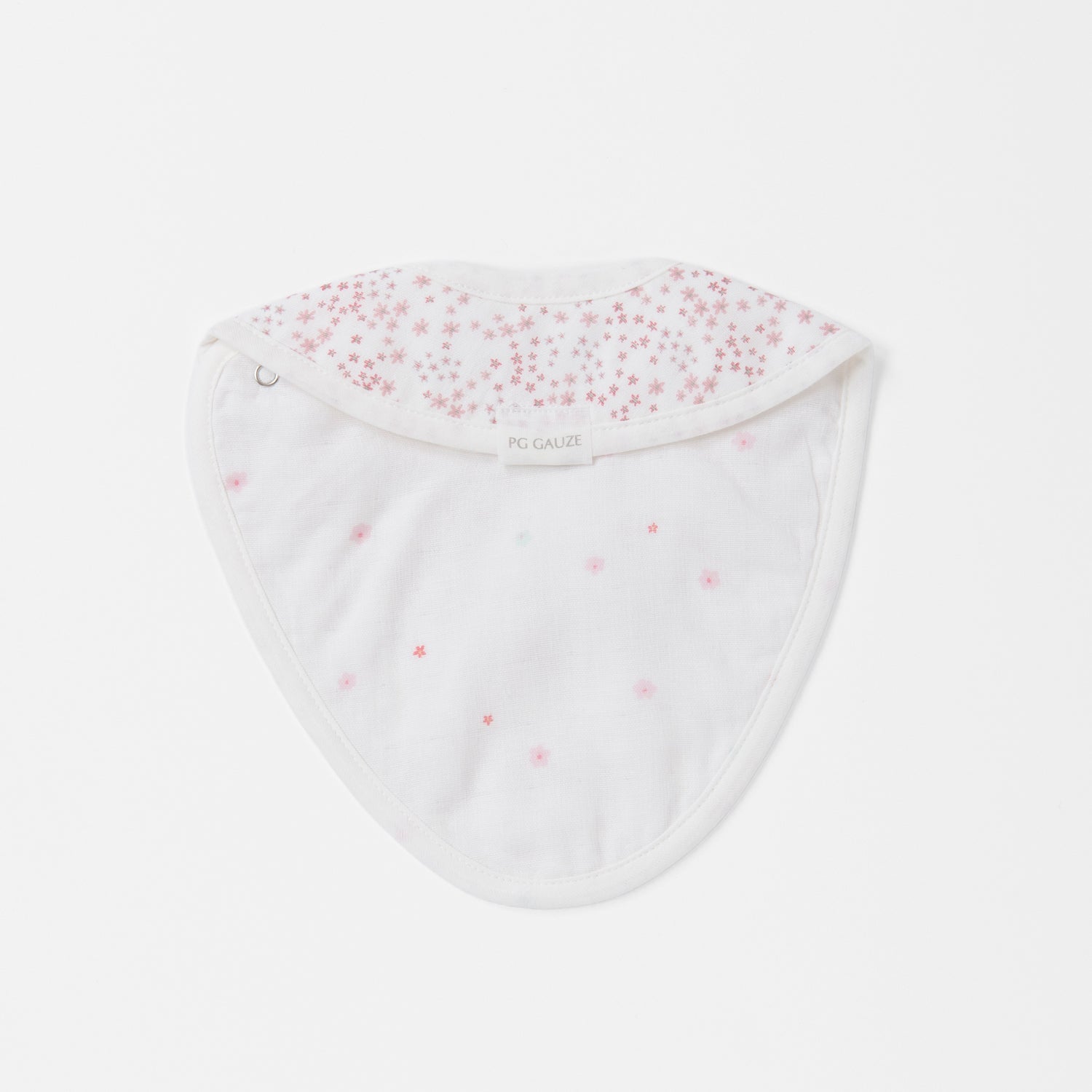 湿り気を通しにくい軽防水のポリエステル布を、やわらかな2重織ガーゼではさんだスタイ。