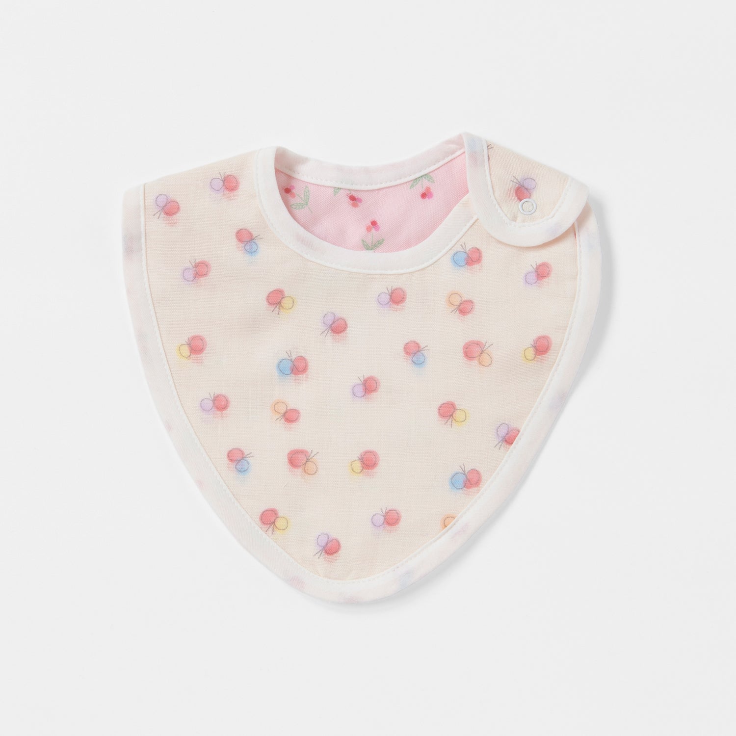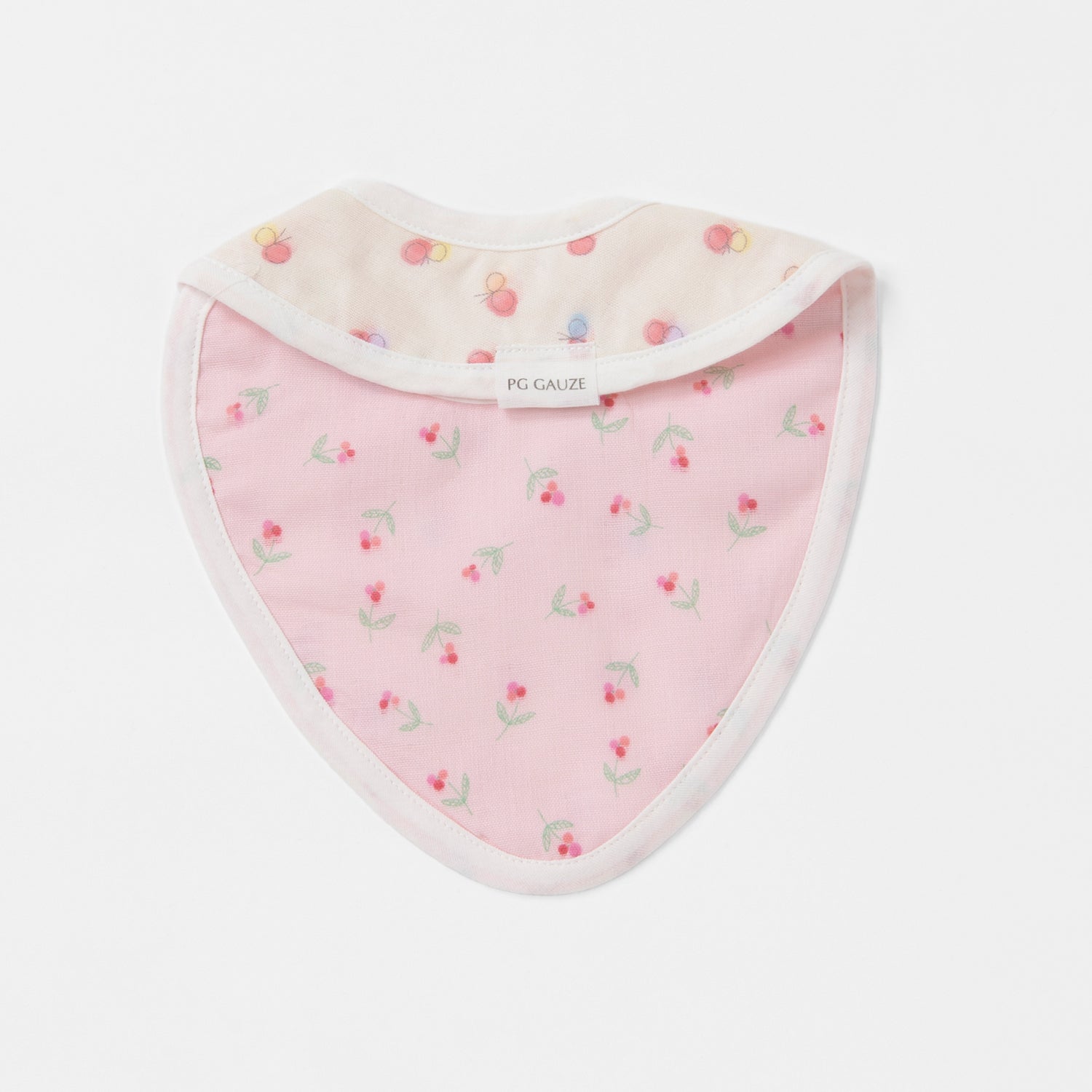 湿り気を通しにくい軽防水のポリエステル布を、やわらかな2重織ガーゼではさんだスタイ。
