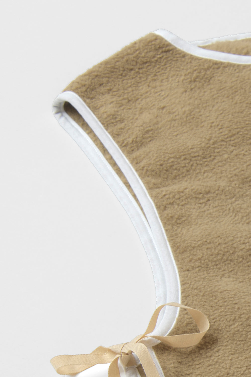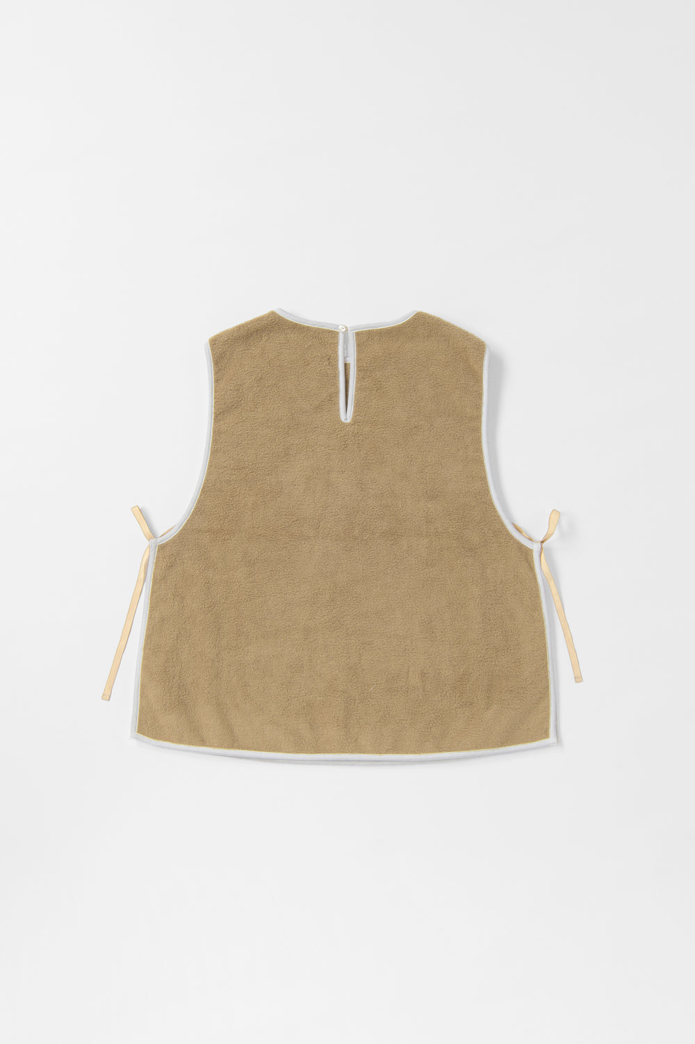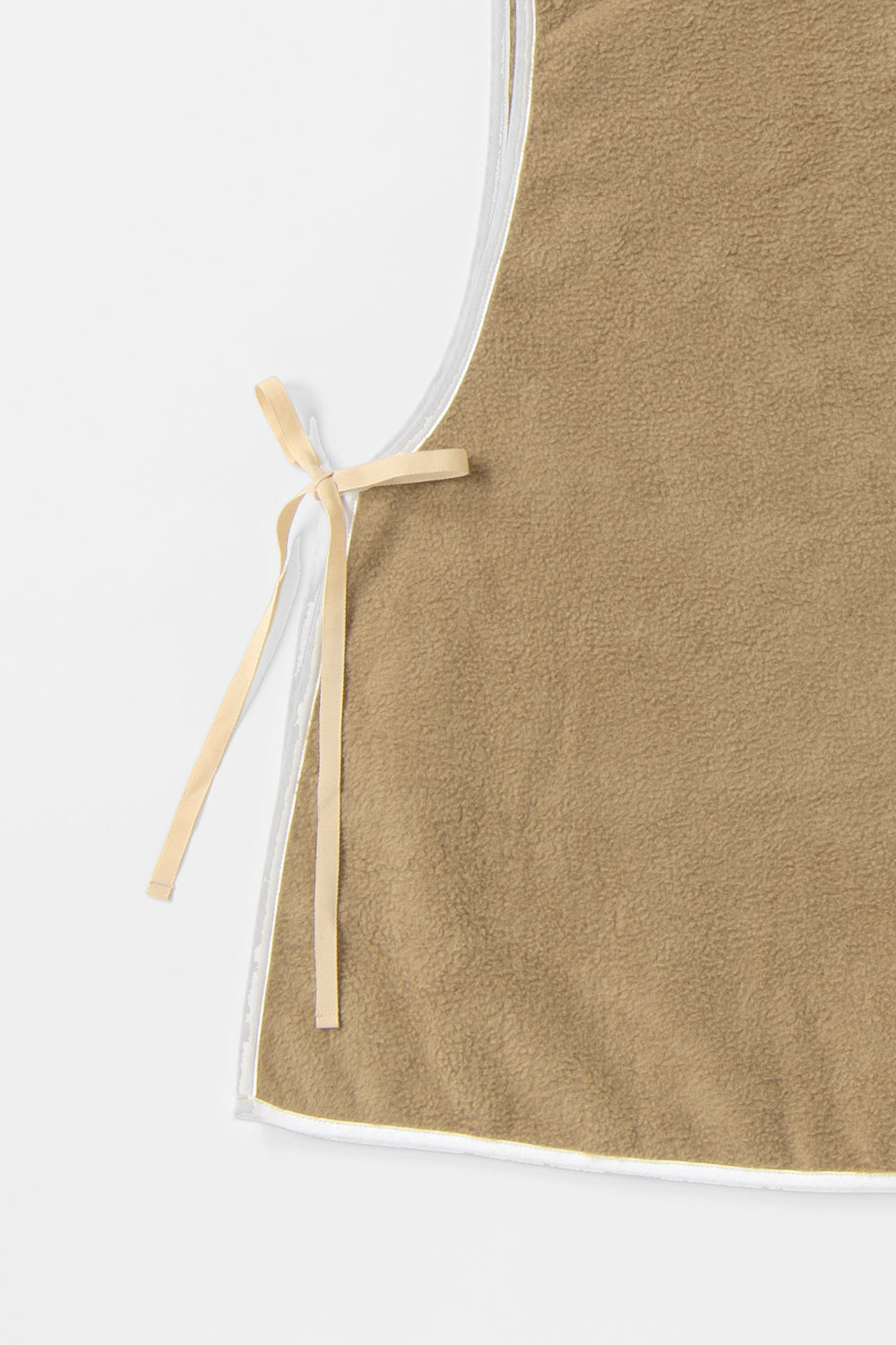 エプロンのようにスポッとかぶれる気軽なボアベスト。