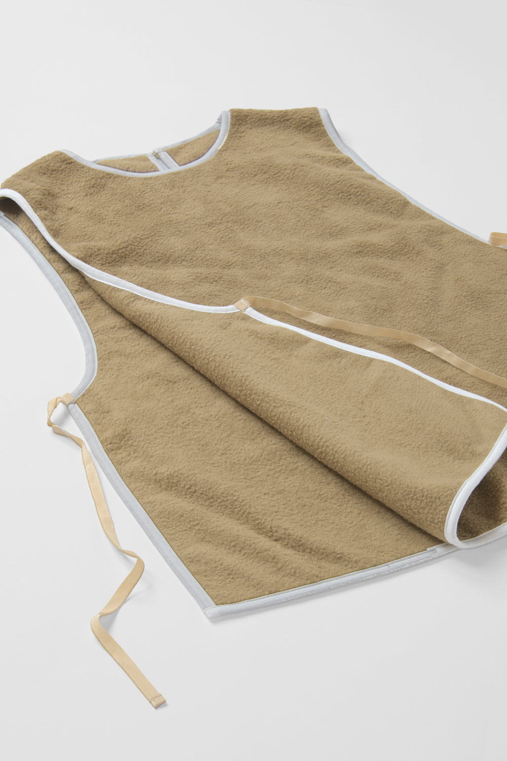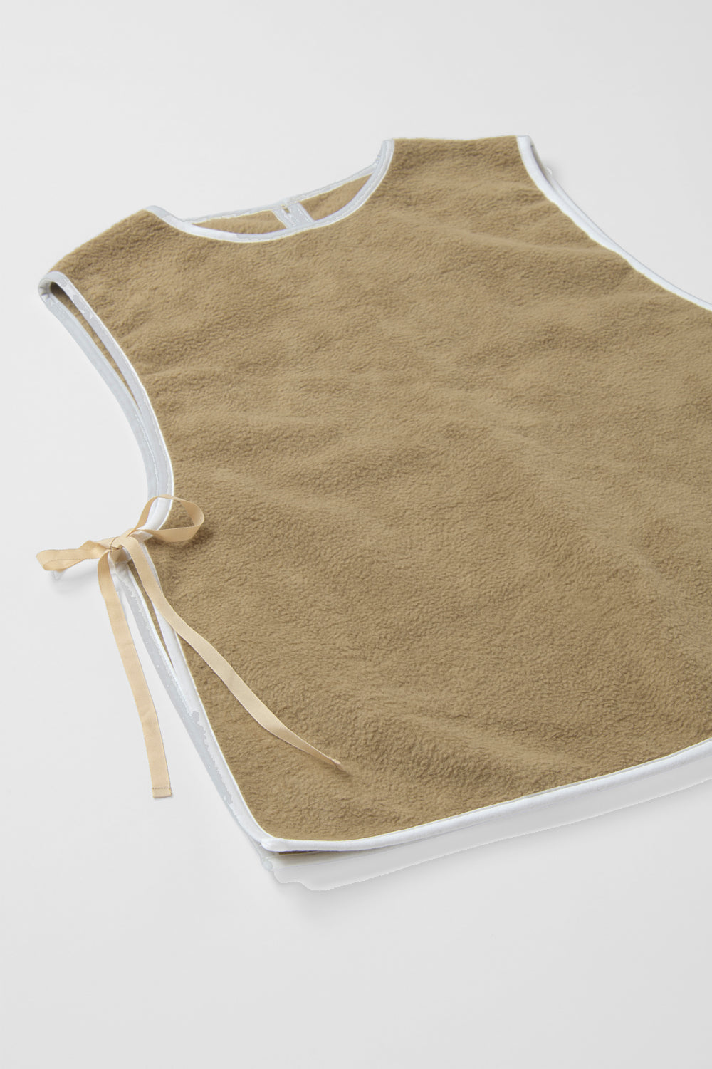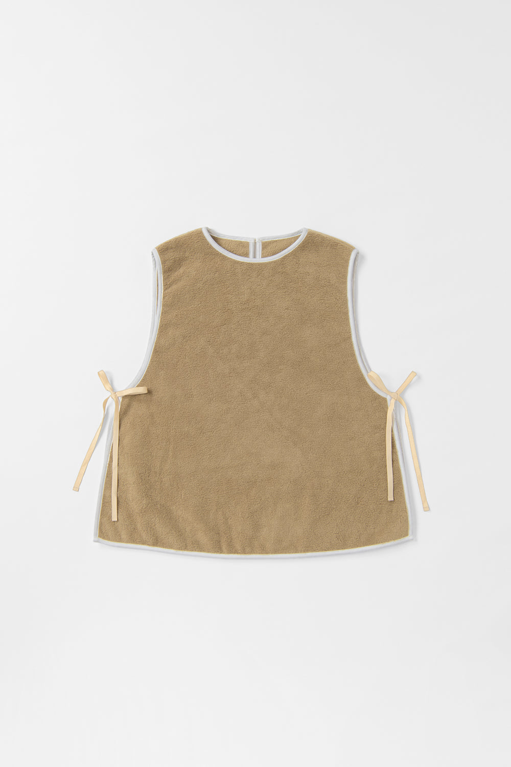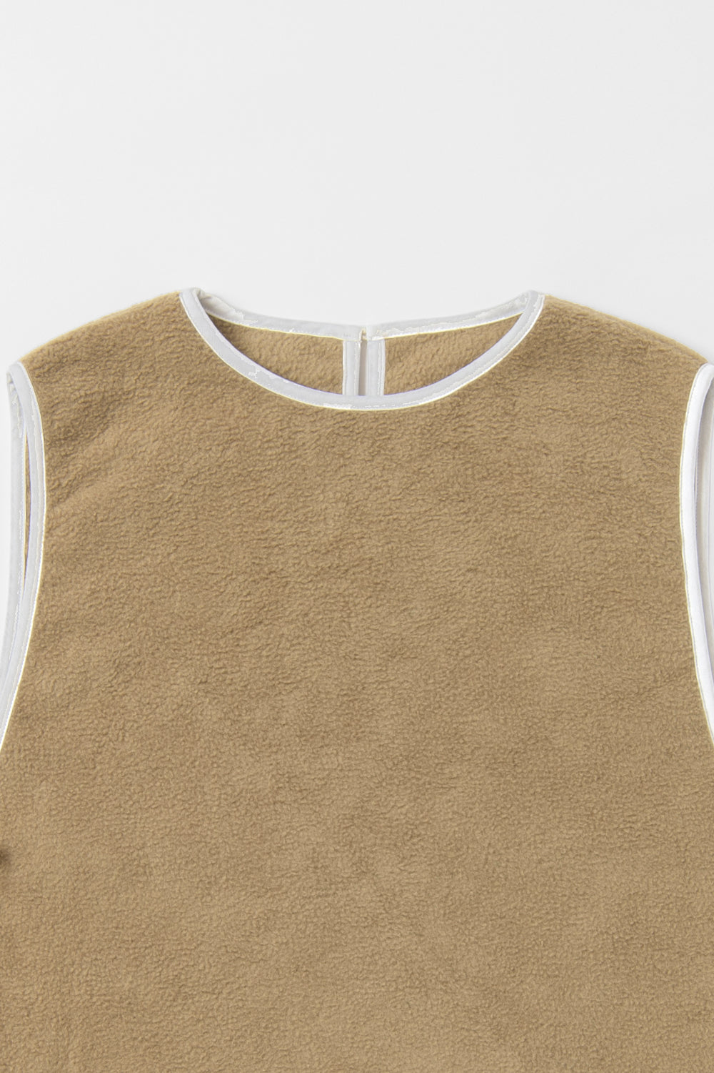 エプロンのようにスポッとかぶれる気軽なボアベスト。