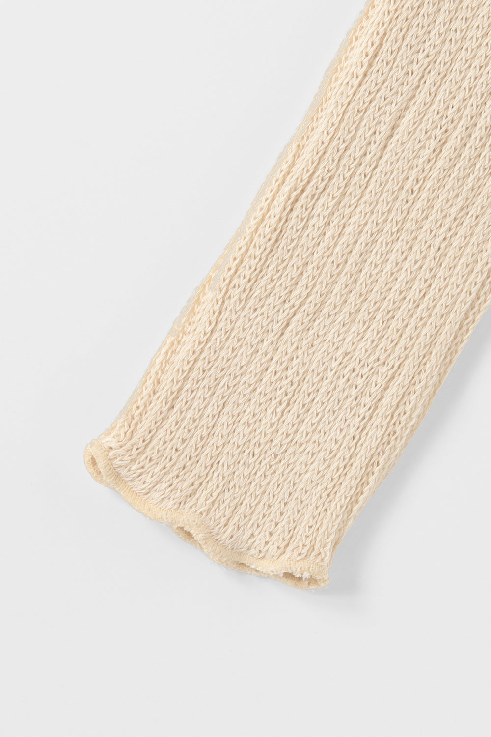 上質な超長綿オーガニックコットンを、極限まで撚りを甘くした“極甘撚り糸”で丁寧に紡いだ糸を使用。繊維が長いため、通常の綿よりも糸のつなぎ目が少なく、しなやかでやわらかな肌ざわりが特長です。