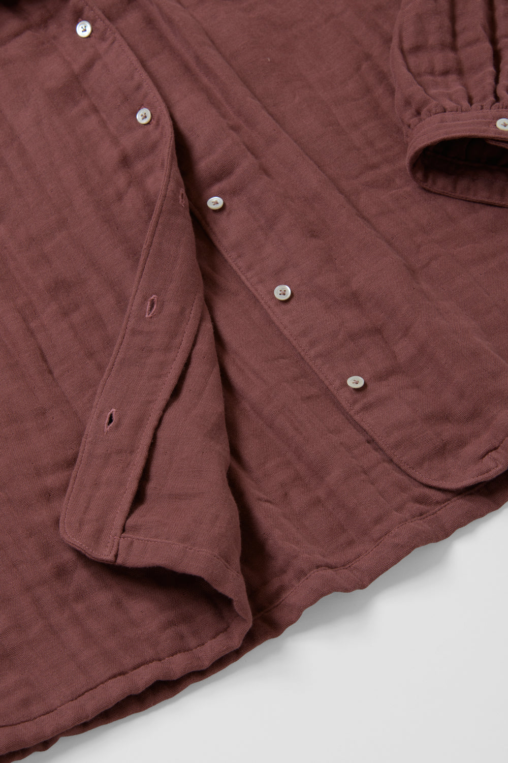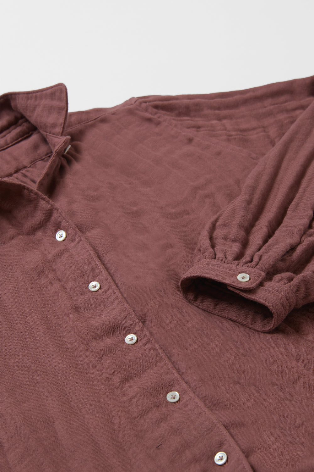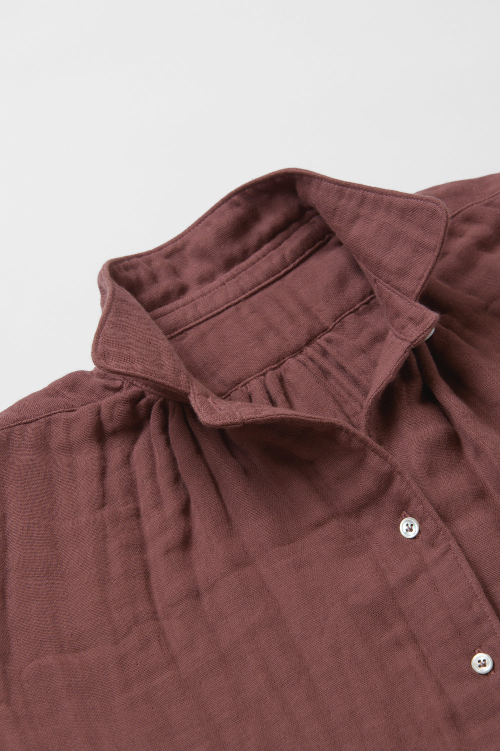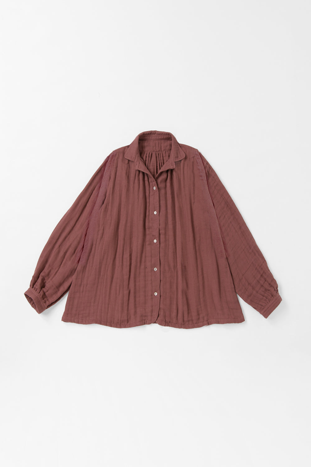 タテ糸に毛羽の少ないコンパクトヤーン、ヨコ糸にツヤのあるコーマ糸を使用。3重ガーゼのような軽やかさと、4重織ならではのあたたかさを兼ね備えた、やわらかで丈夫なガーゼ素材です。
