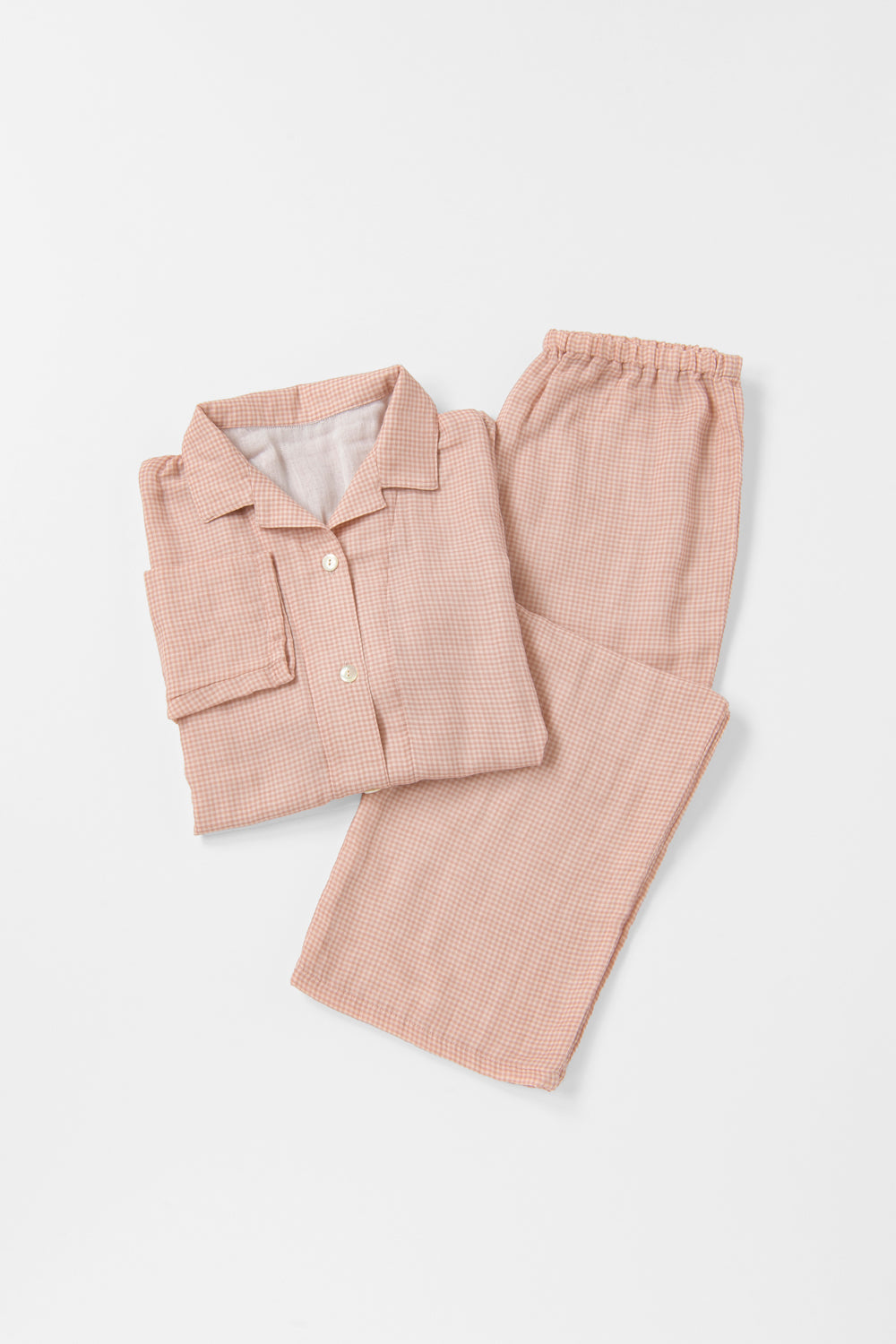 ピージーガーゼ|あたたかいパジャマレディス ピンクチェック