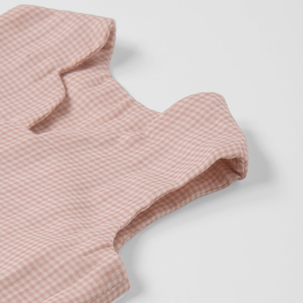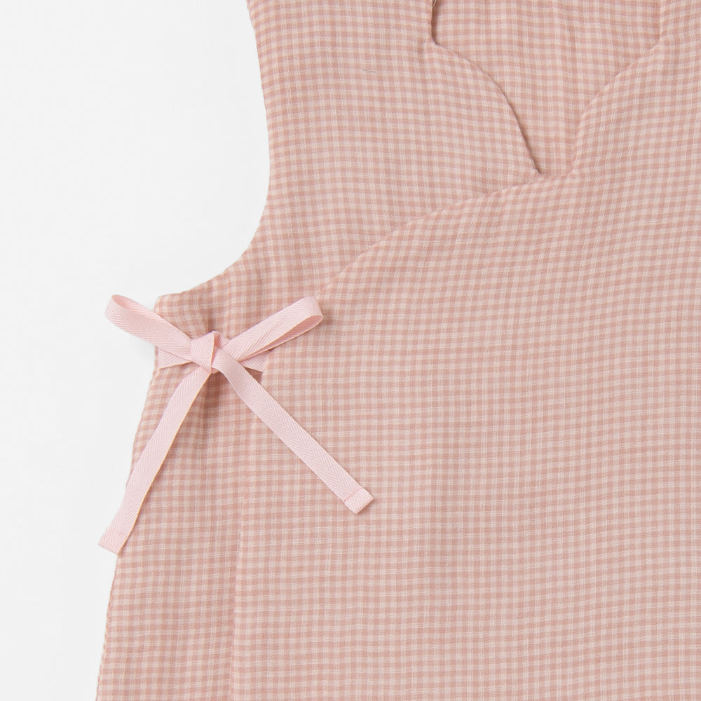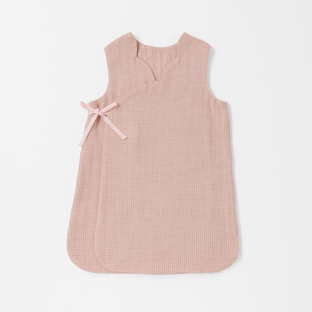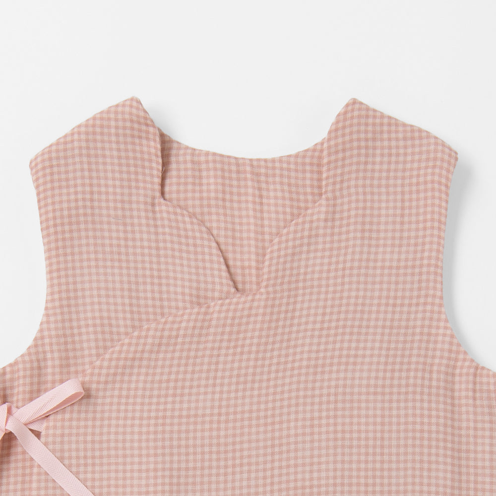 ロング丈なので小さい月齢では足まで包み、成長とともにチュニック丈ベストとしてお使いいただけます。