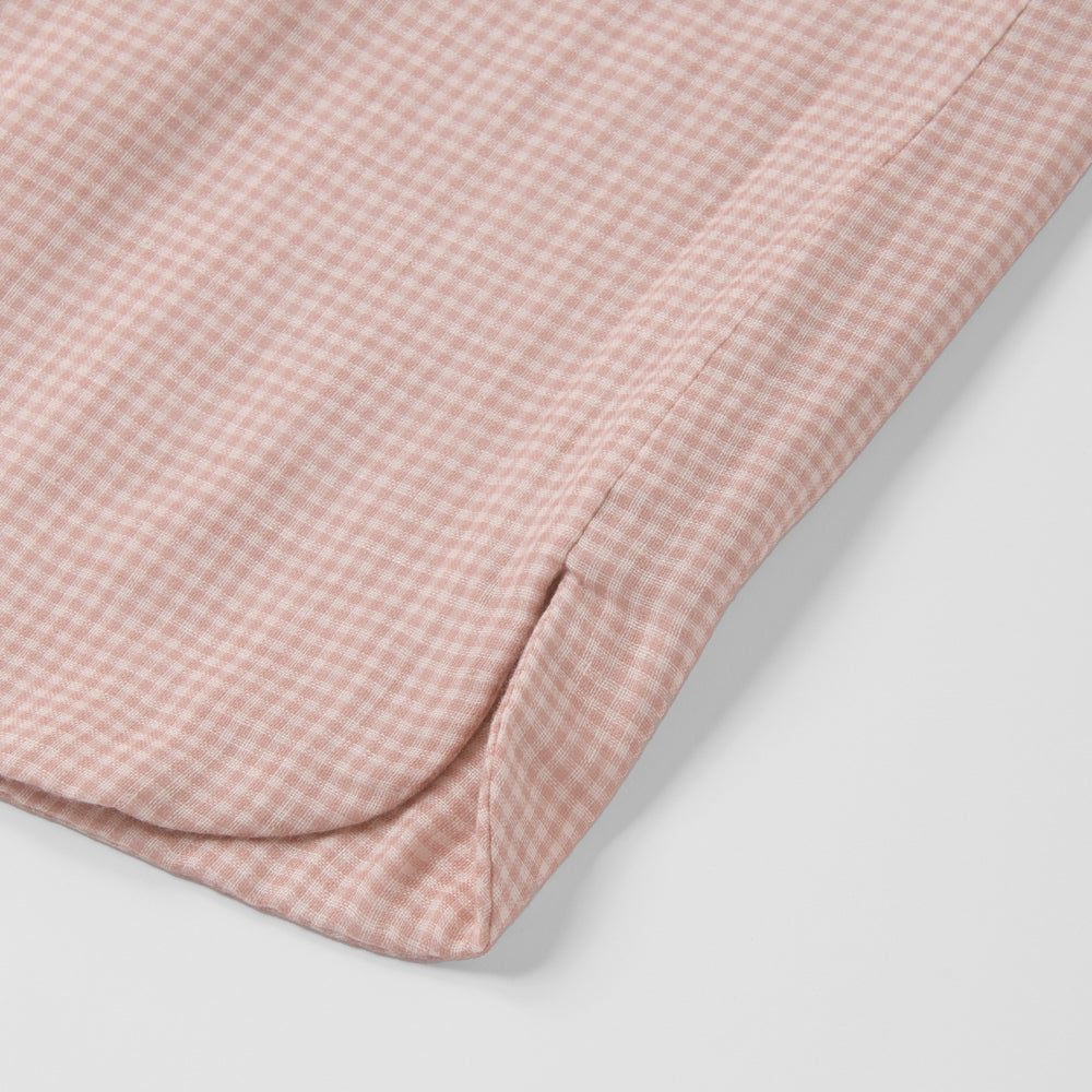 しわになりにくくあたたかい3重織ガーゼを2枚重ねた6重仕立で、肩やおなかを冷やしません。