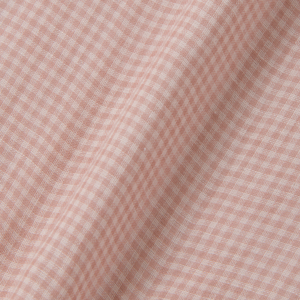 現在は生産されていない石川県金沢市の低速織機を使い、久留米絣の産地で知られる福岡県筑後市で織り上げています。繊維の短いやわらかな綿糸を使用し、糸が切れないようゆっくりと丁寧に織り上げていくことで、軽くやさしい素材に仕上がりました。洗うほどに空気を含みやわらかな風合いに変化します。