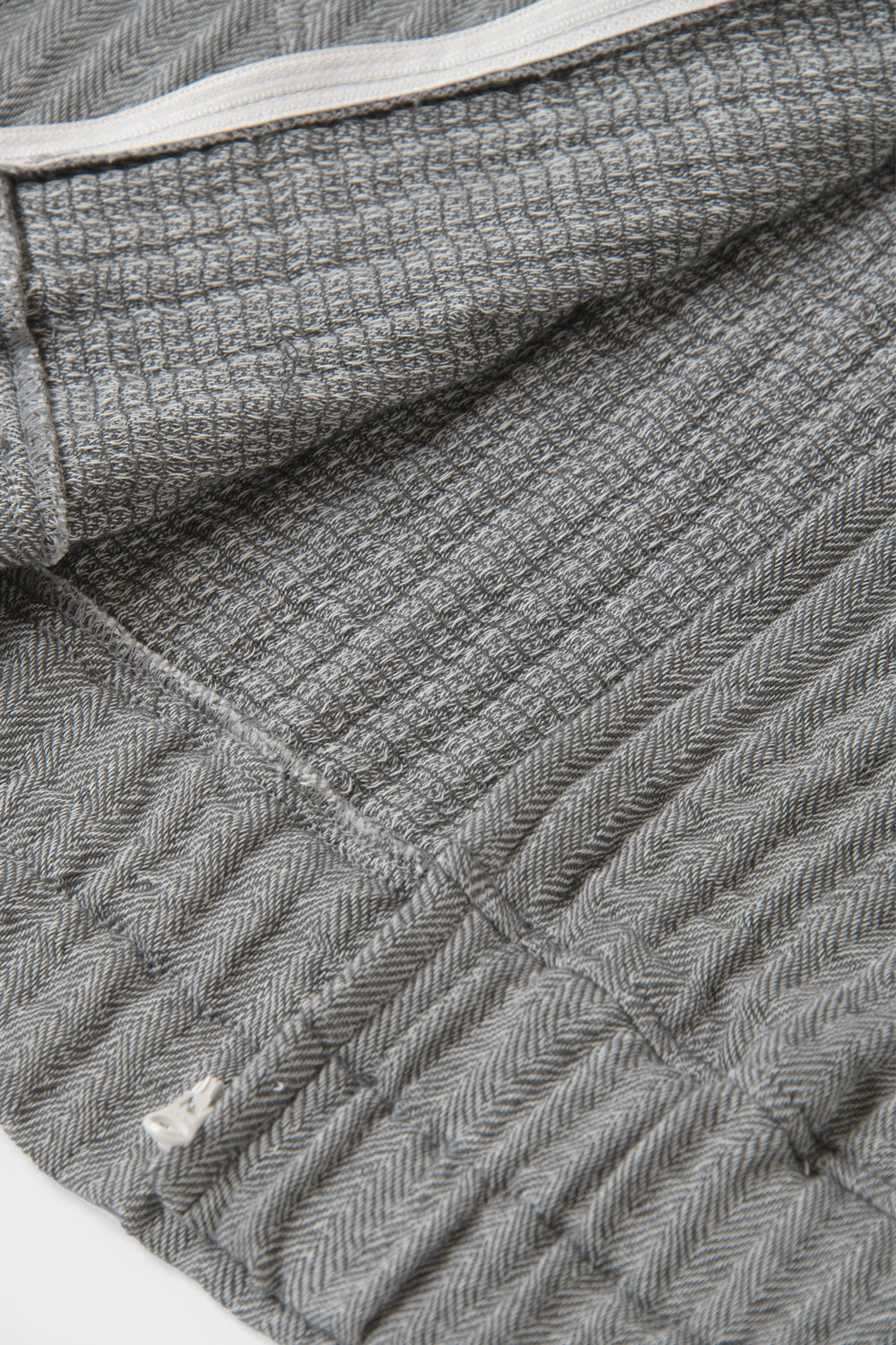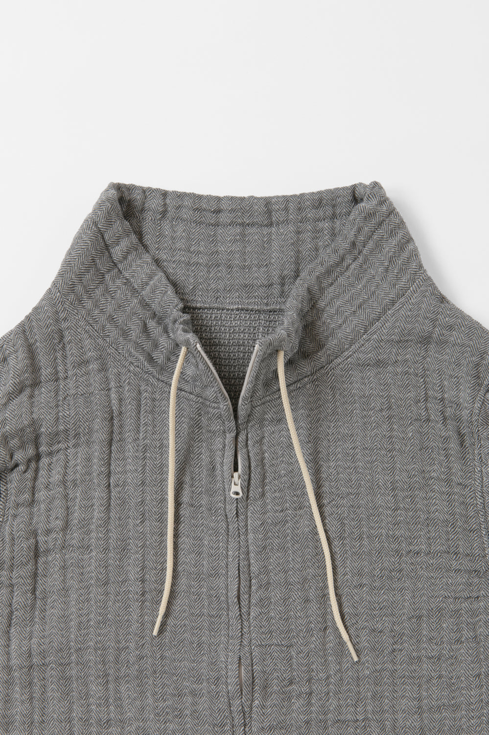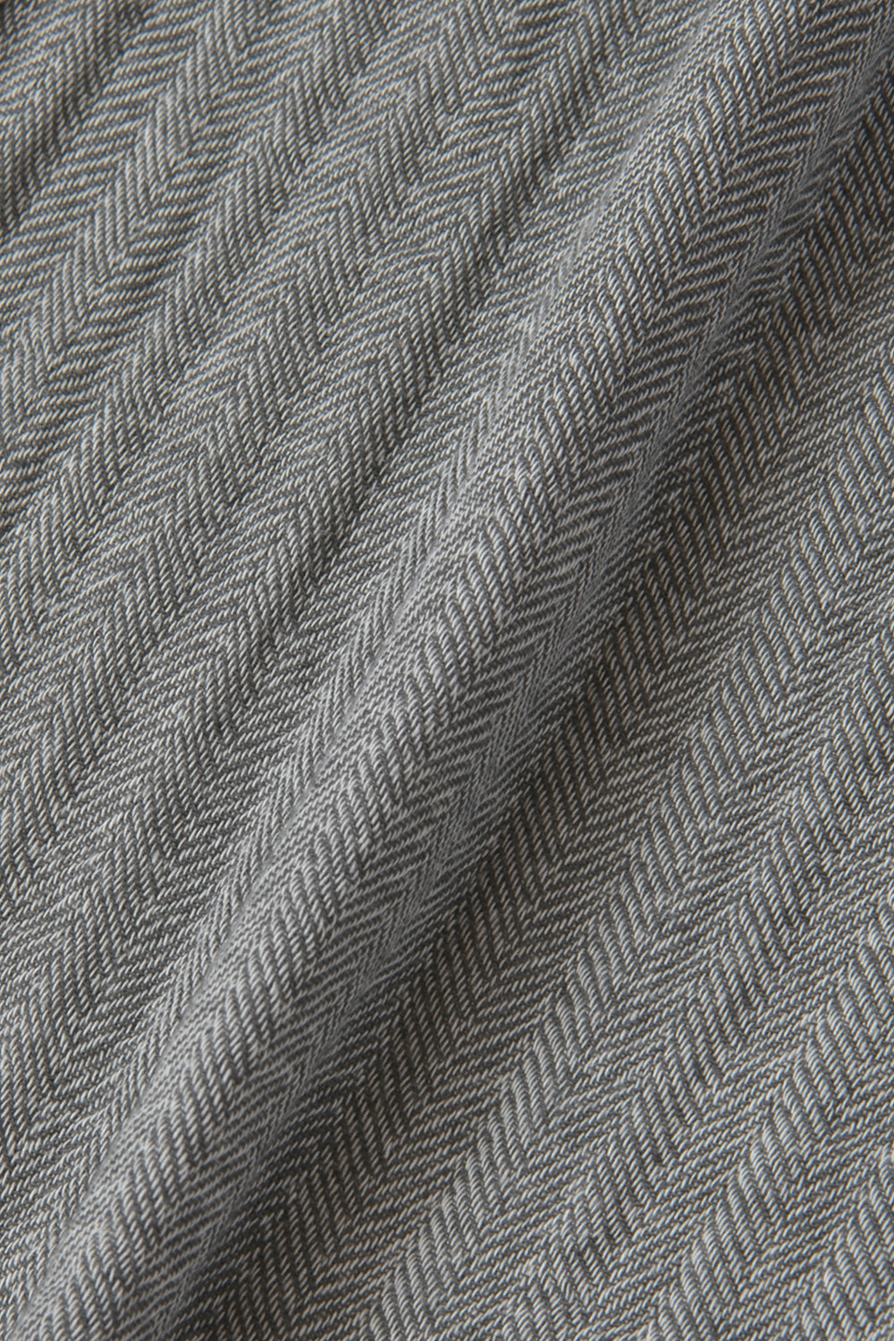 この2つの生地を表裏で組み合わせた二重織「ワッフルヘリンボン」は、軽やかでやわらかな着心地と上品な印象を同時に楽しめる、快適で上質な素材です。