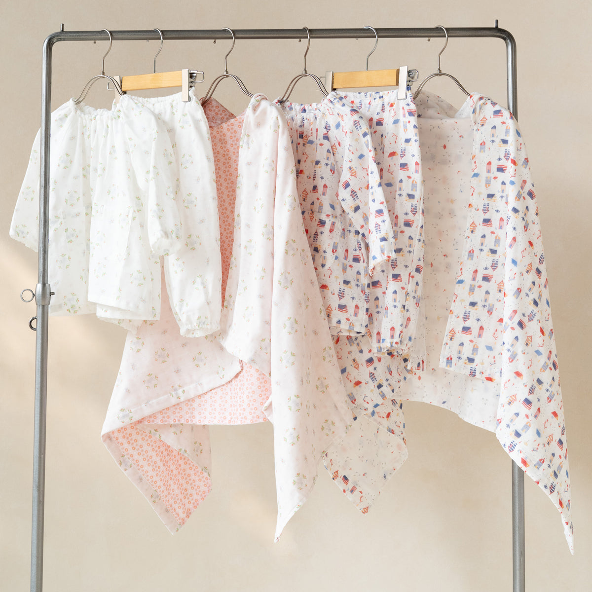 やわらかな2重織ガーゼがやさしく肌になじむ、心地よい着心地のスモックタイプパジャマ。