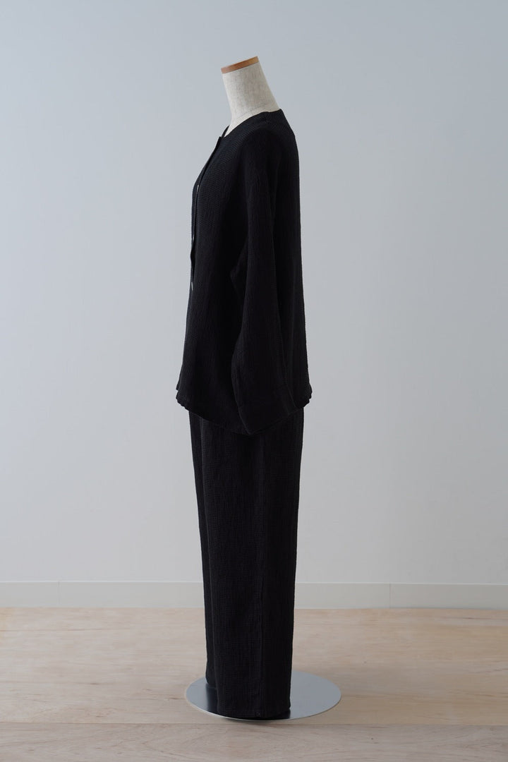 The texture of the waffle weave and the softness of the smooth linen are attractive. |