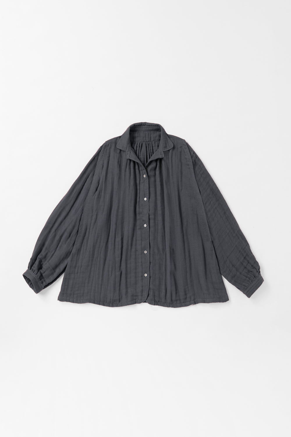 A double gauze that is gently woven using cotton yarn with short fibers and is gentle on the skin. It features a nuanced color with light pink on the warp and light blue on the weft. We finish from weaving to dyeing and processing in the production area of ​​Kurume Kasuri in Kyushu. 100% cotton