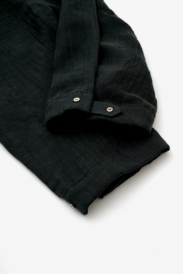 肌に触れる側はやわらかい綿、表は光沢のある麻のダブルガーゼをやさしく叩きほぐし、ふっくらと洗いざらしの風合いに加工しました。