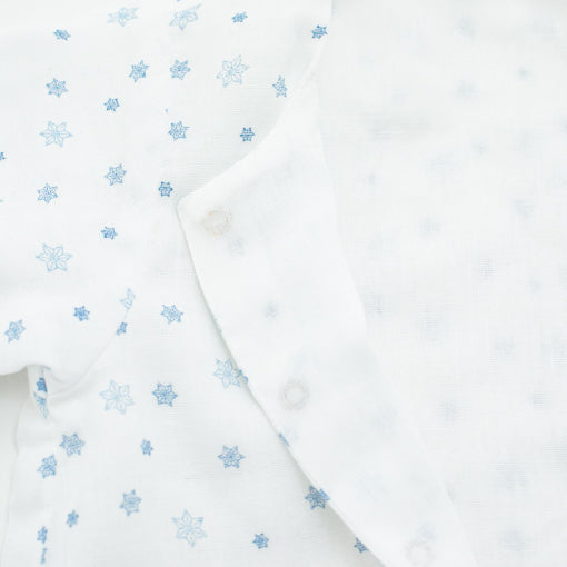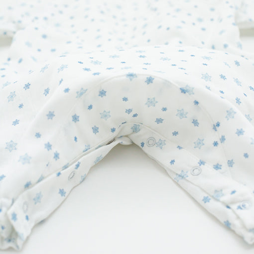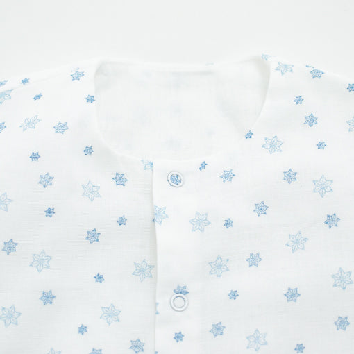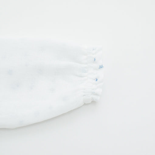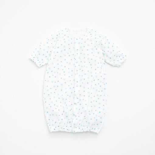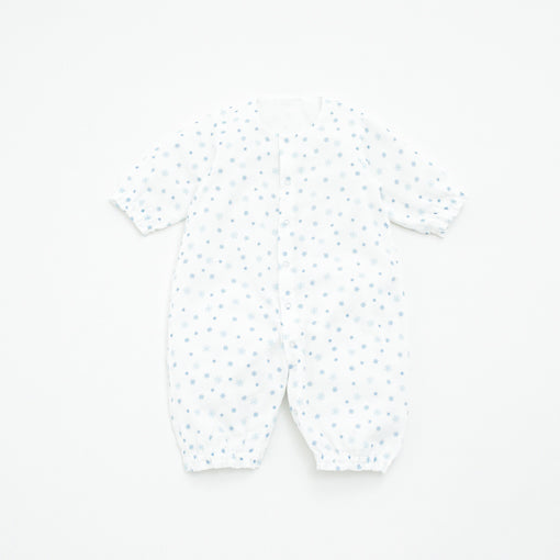 表はやわらかな2重織ガーゼ、裏は軽やかな1重織ガーゼを合わせた、あたたかな3重仕立てのロンパース。