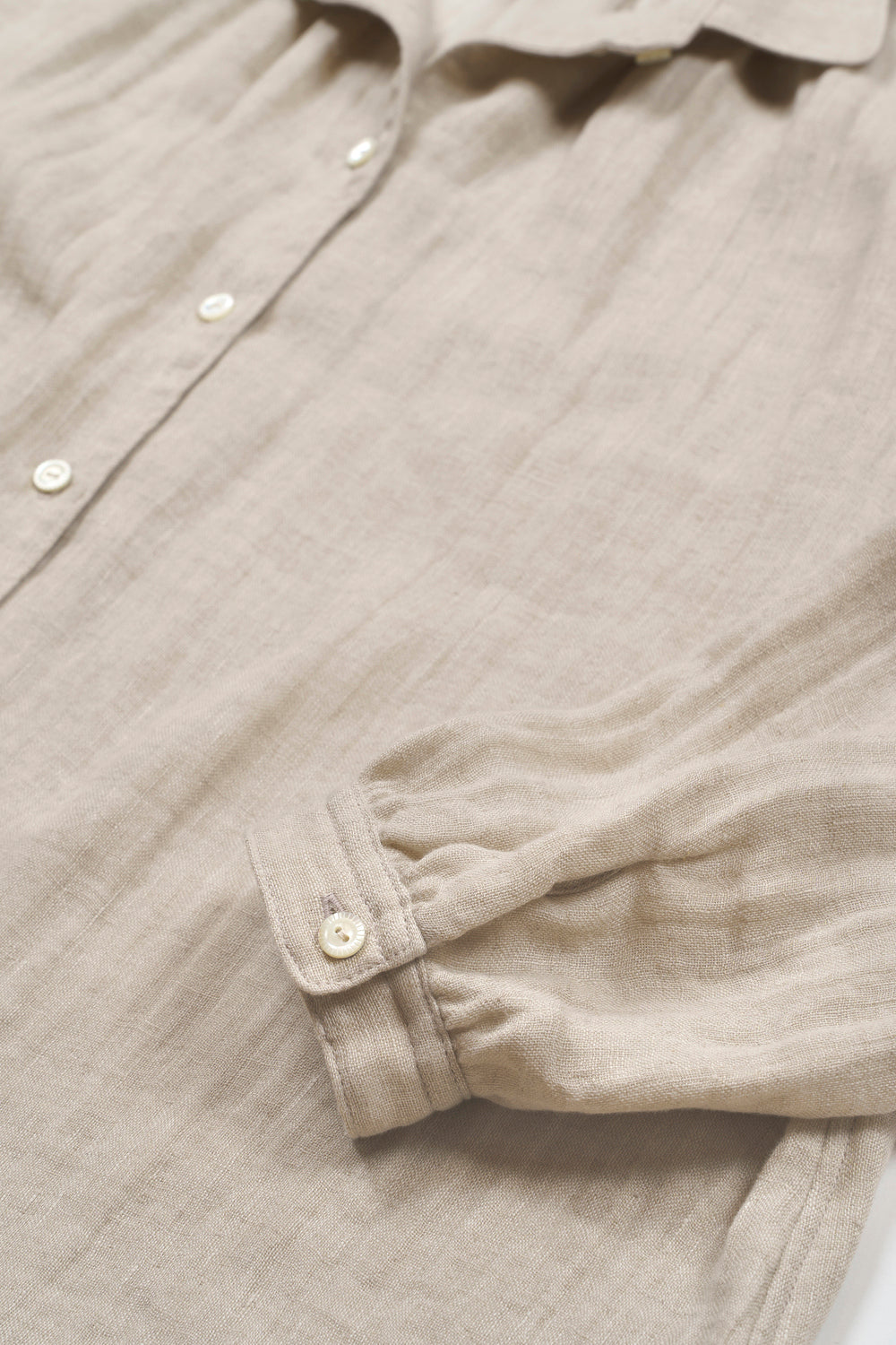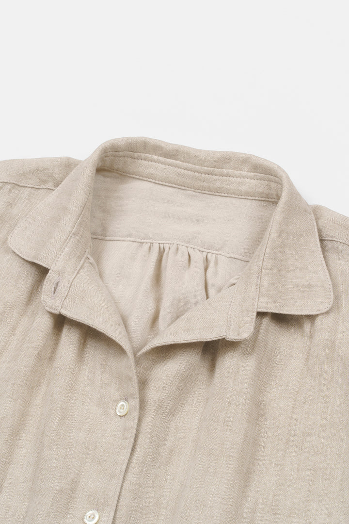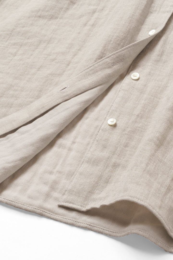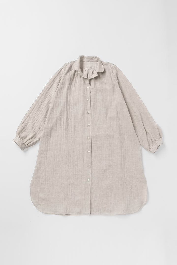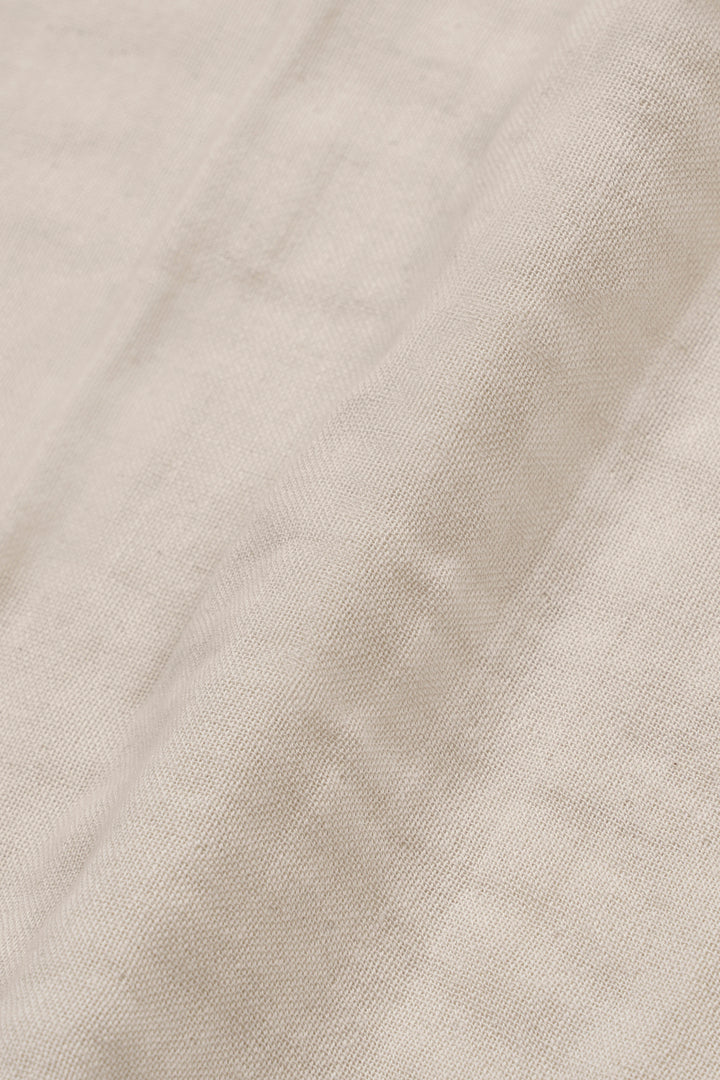 肌に触れる側はやわらかい綿、表は光沢のある麻のダブルガーゼをやさしく叩きほぐし、ふっくらと洗いざらしの風合いに加工しました。