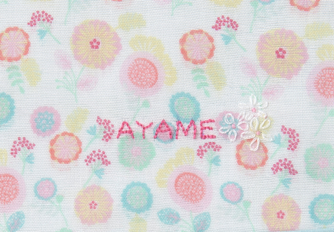 お名前刺繍も承っております。ワンポイント柄とあわせてどうぞ。
